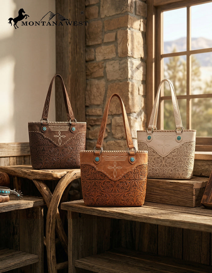 WG454-2002BR Wrangler Braided Tassel Tote Bag - Brown