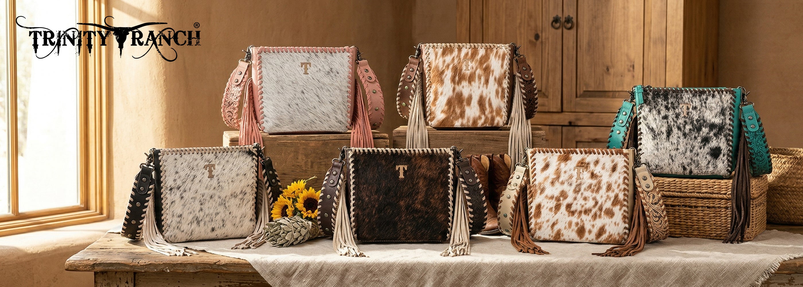 TR207-8360TN Trinity Ranch Cowhide Fringe Crossbody Bag - Tan