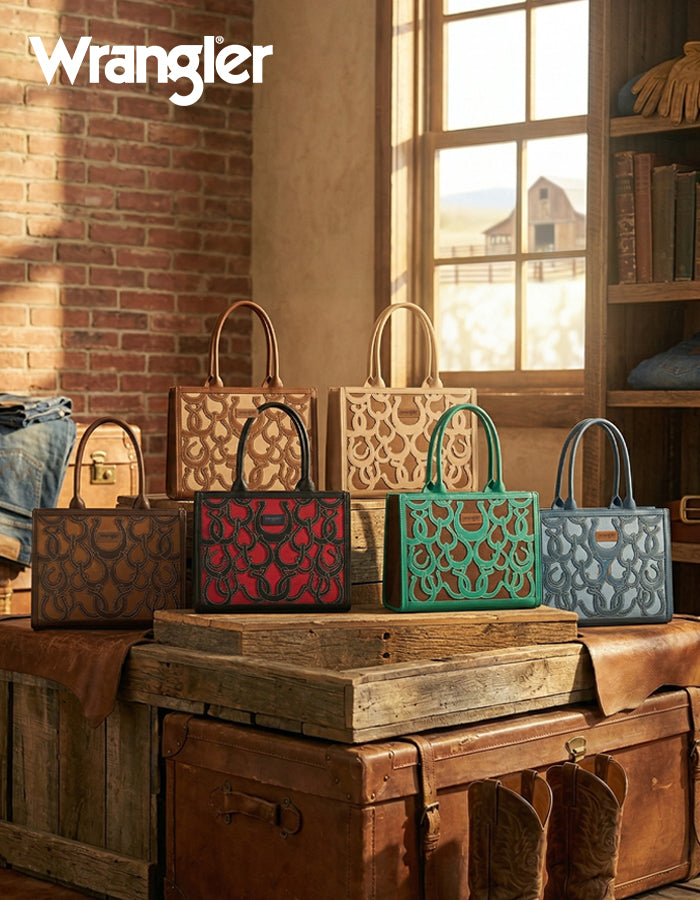 WG386-8120S Wrangler Cow Print Tote/Crossbody - Black