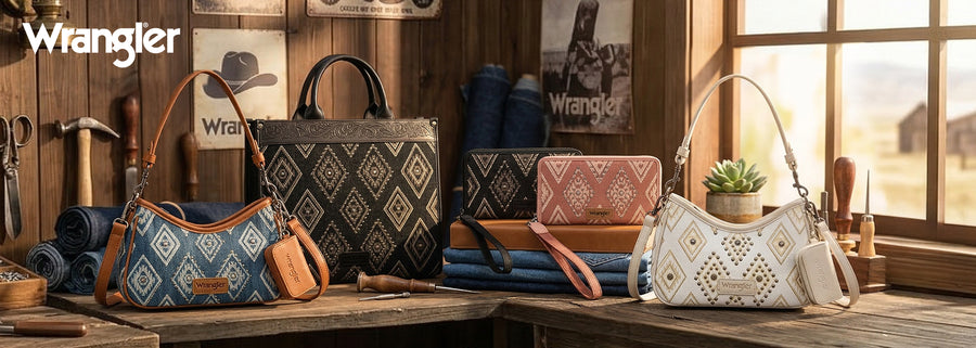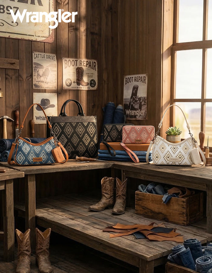WG435-8182BK Wrangler Aztec Studded Denim Shoulder Bag with Mini Pouch -Black