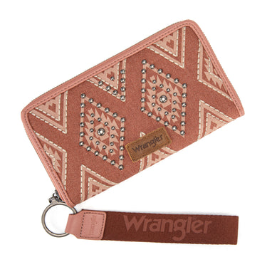 WG435-W006PK Wrangler Aztec Studded Wallet/Wristlet - Pink