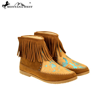 MBT-1903 Montana West Western Booties Genuine Hair-On Hide - Brown By Size