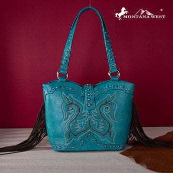 MW1247G-8317 Montana West Embroidered Fringe Collection Concealed Carry Boot Purse Tote
