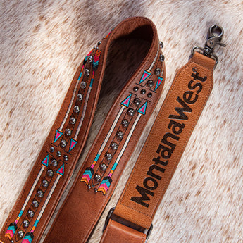 PST-2005 Montana West Western Guitar Style Embroidered Arrow Crossbody Strap -Brown