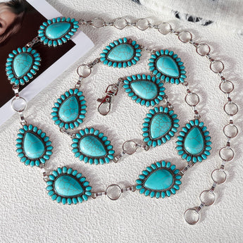 RCB-1022 Rustic Couture Oval Stone Concho Link Chain Belt