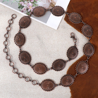 RCB-1030 Rustic Couture Etched Oval Concho Link Chain Belt