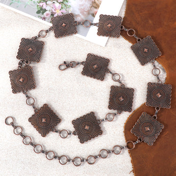 RCB-1031 Rustic Couture Etched Square Concho Link Chain Belt