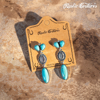 RCE-1077 Rustic Couture's Navajo Oval Concho Nature Turquoise Dangling Earring