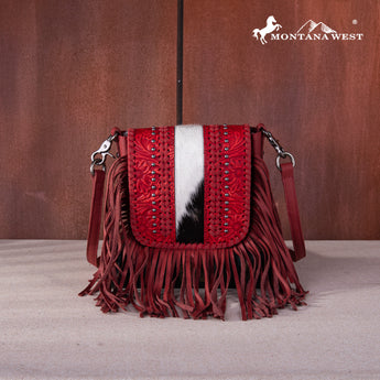 RLC-L168 Montana West Genuine Leather Tooled Collection Fringe Crossbody