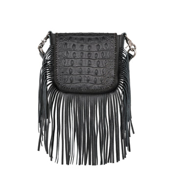 RLC-L173 Montana West Genuine Leather Tooled Collection Fringe Crossbody