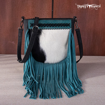 TR171-8360 Trinity Ranch Hair-On Cowhide Fringe Crossbody Bag -Black