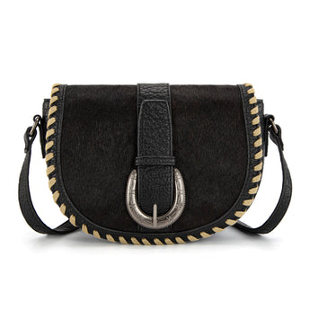 TR204-8360 Trinity Ranch Western Hair-On Cowhide Saddle Crossbody - Black