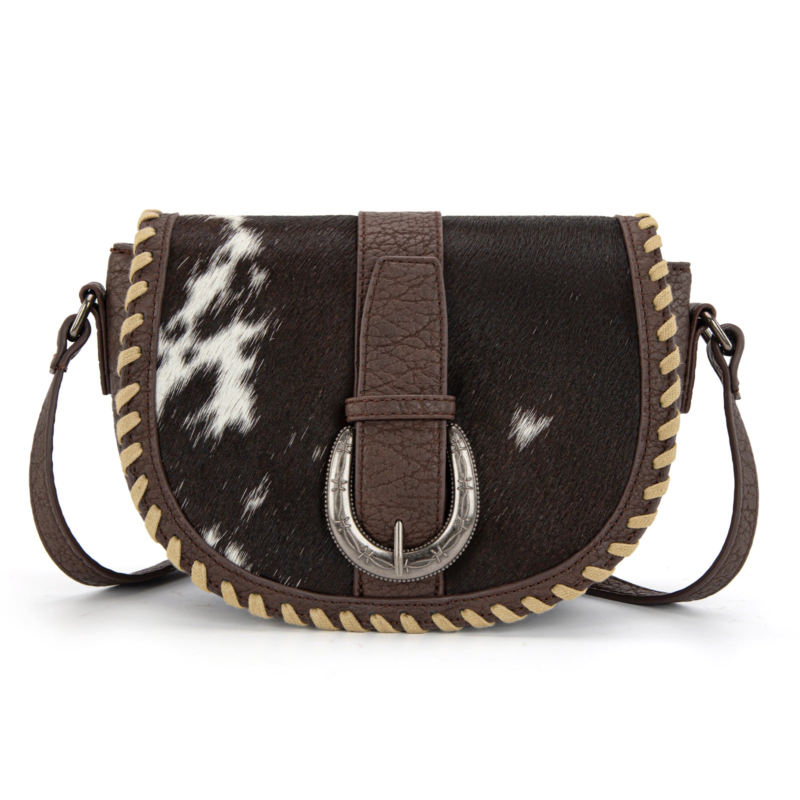 TR204-8360 Trinity Ranch Western Hair-On Cowhide Saddle Crossbody -Coffee