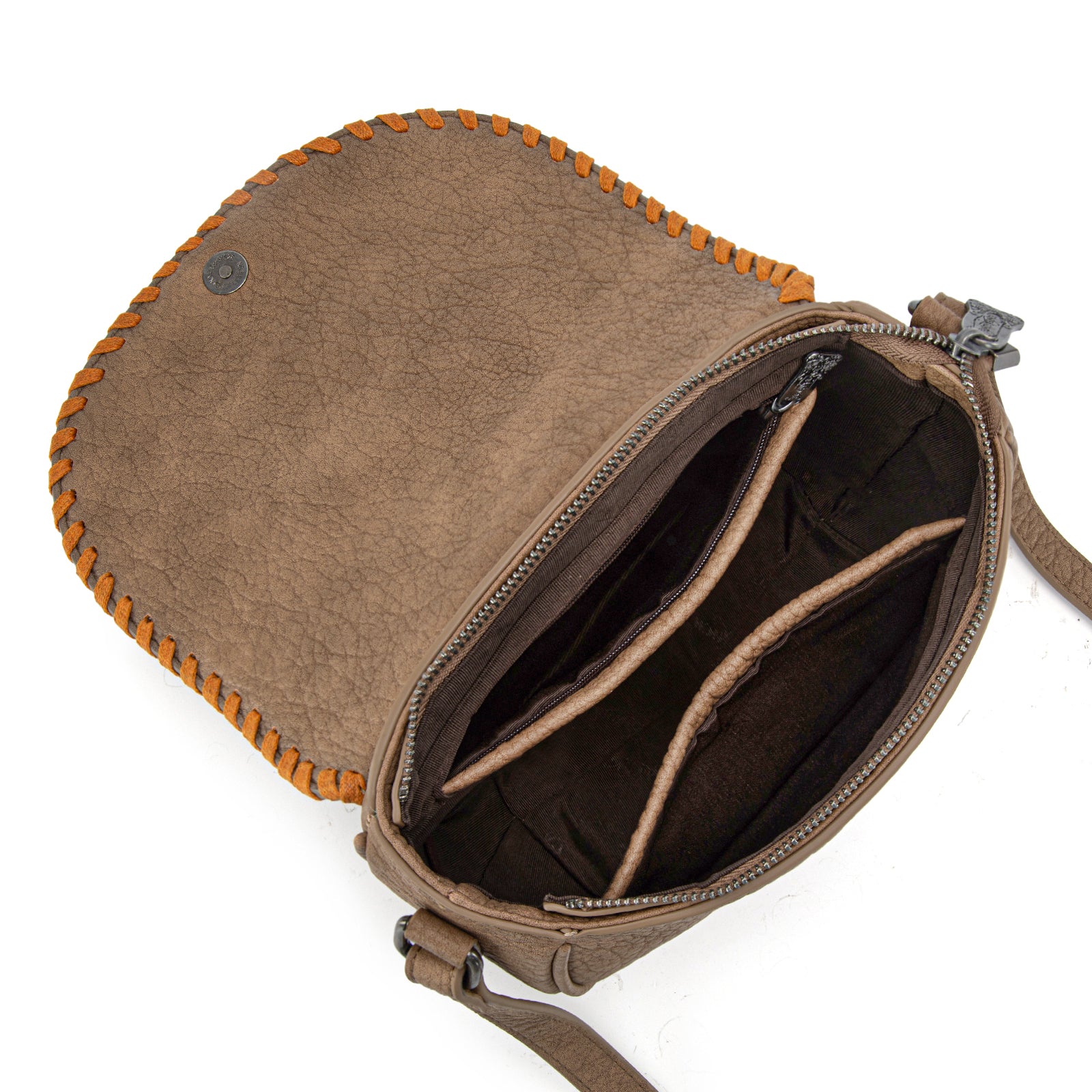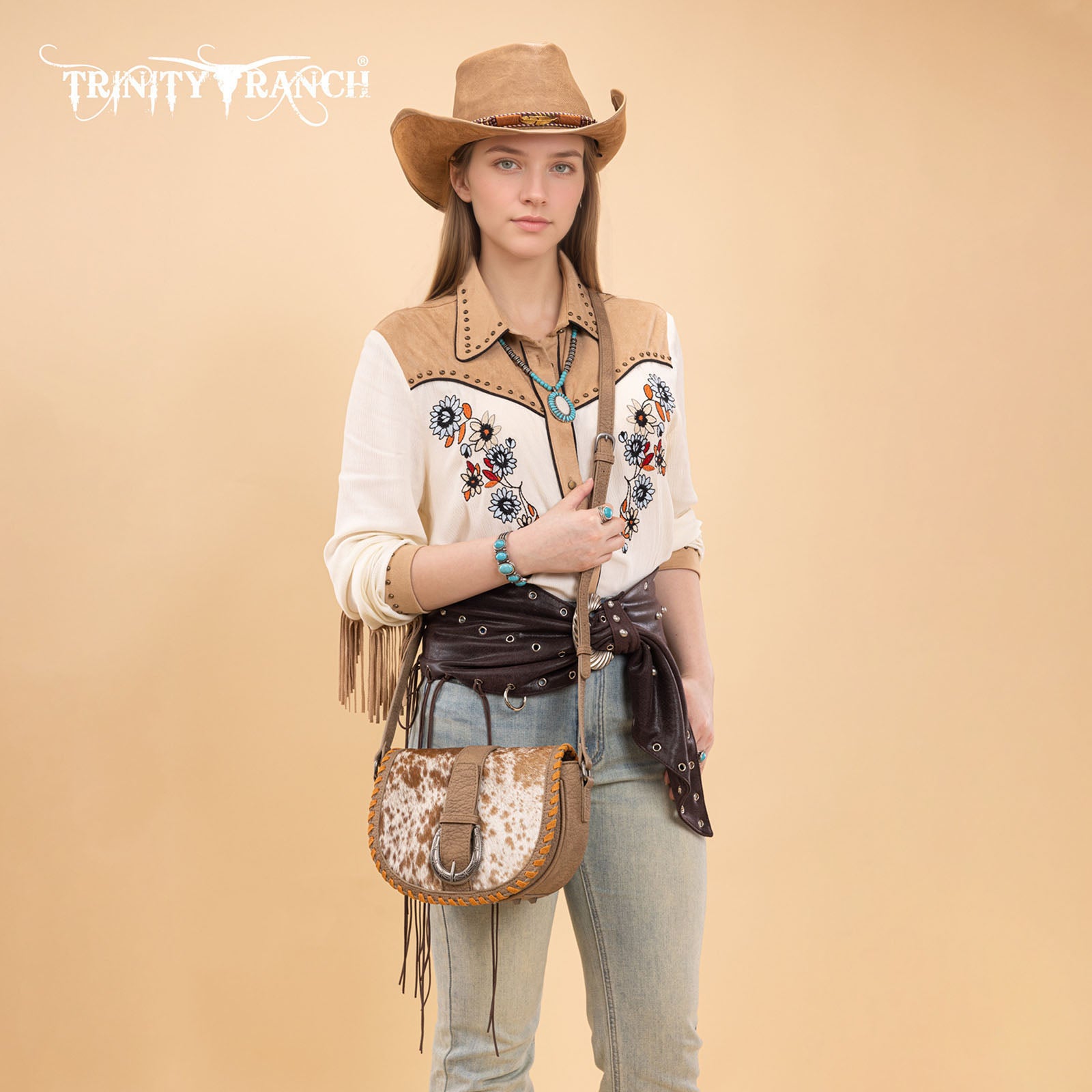 TR204-8360 Trinity Ranch Western Hair-On Cowhide Saddle Crossbody - Khaki