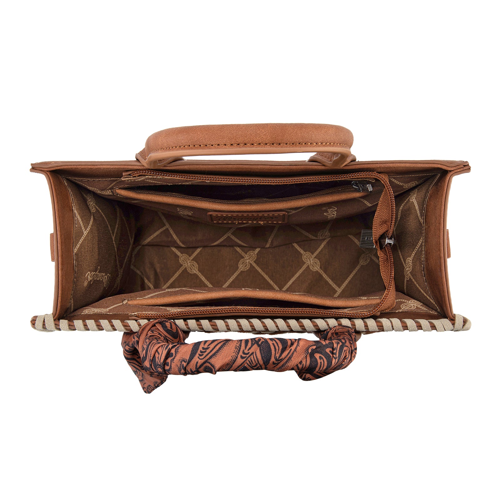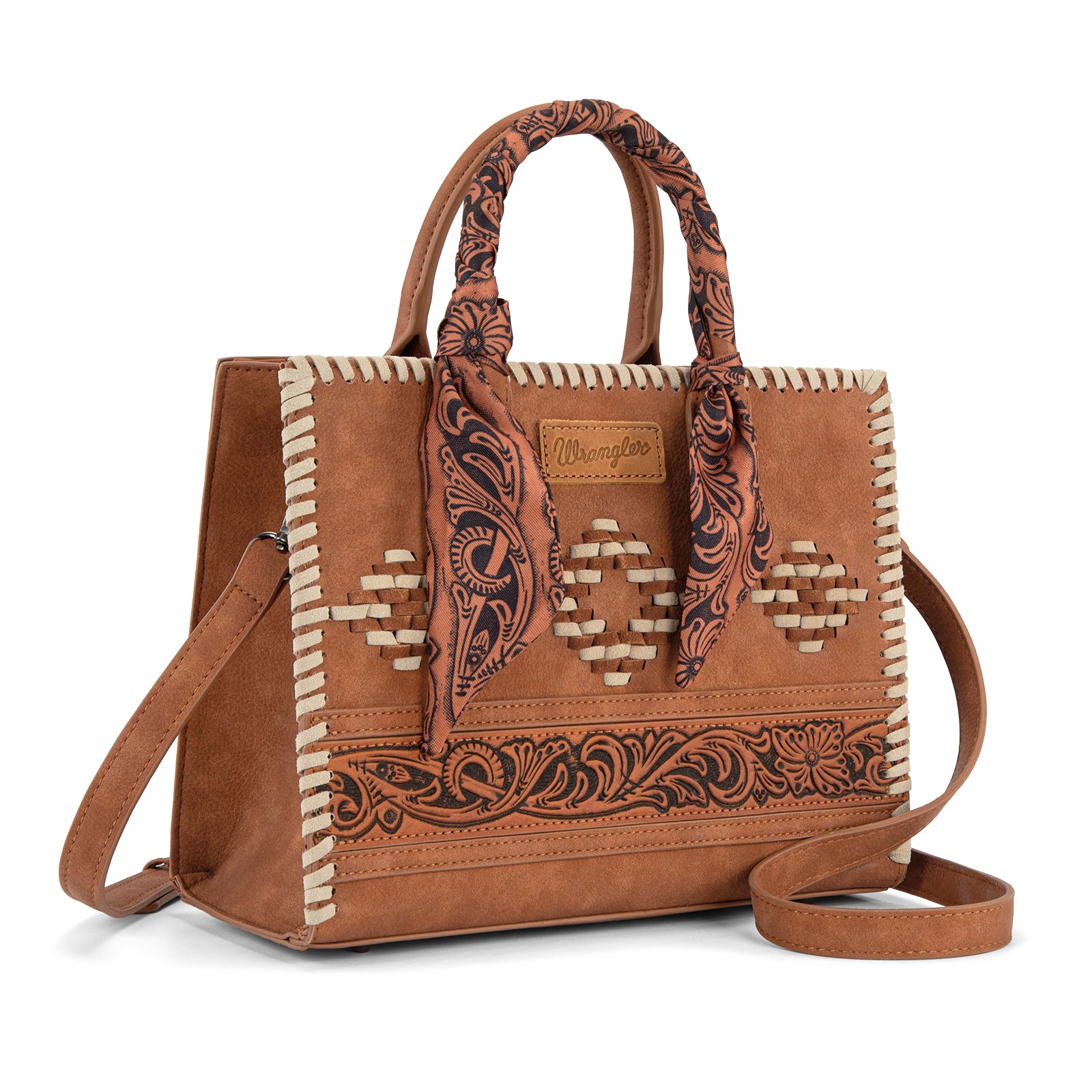 WG310-8120BR Wrangler Whipstitch Aztec Satchel/Crossbody with Scarf Handle -Brown