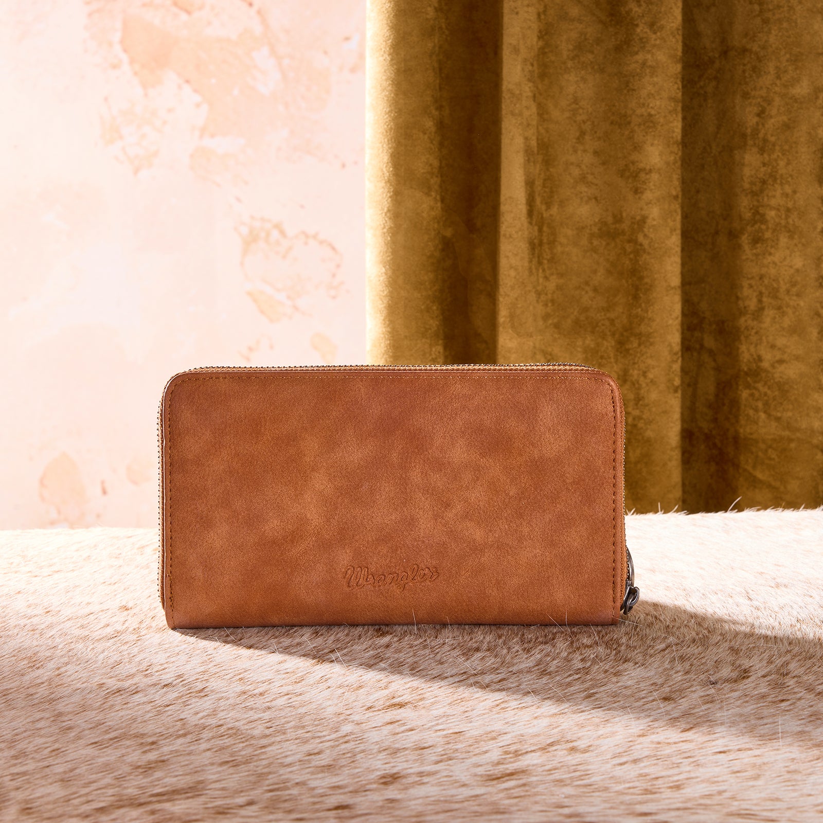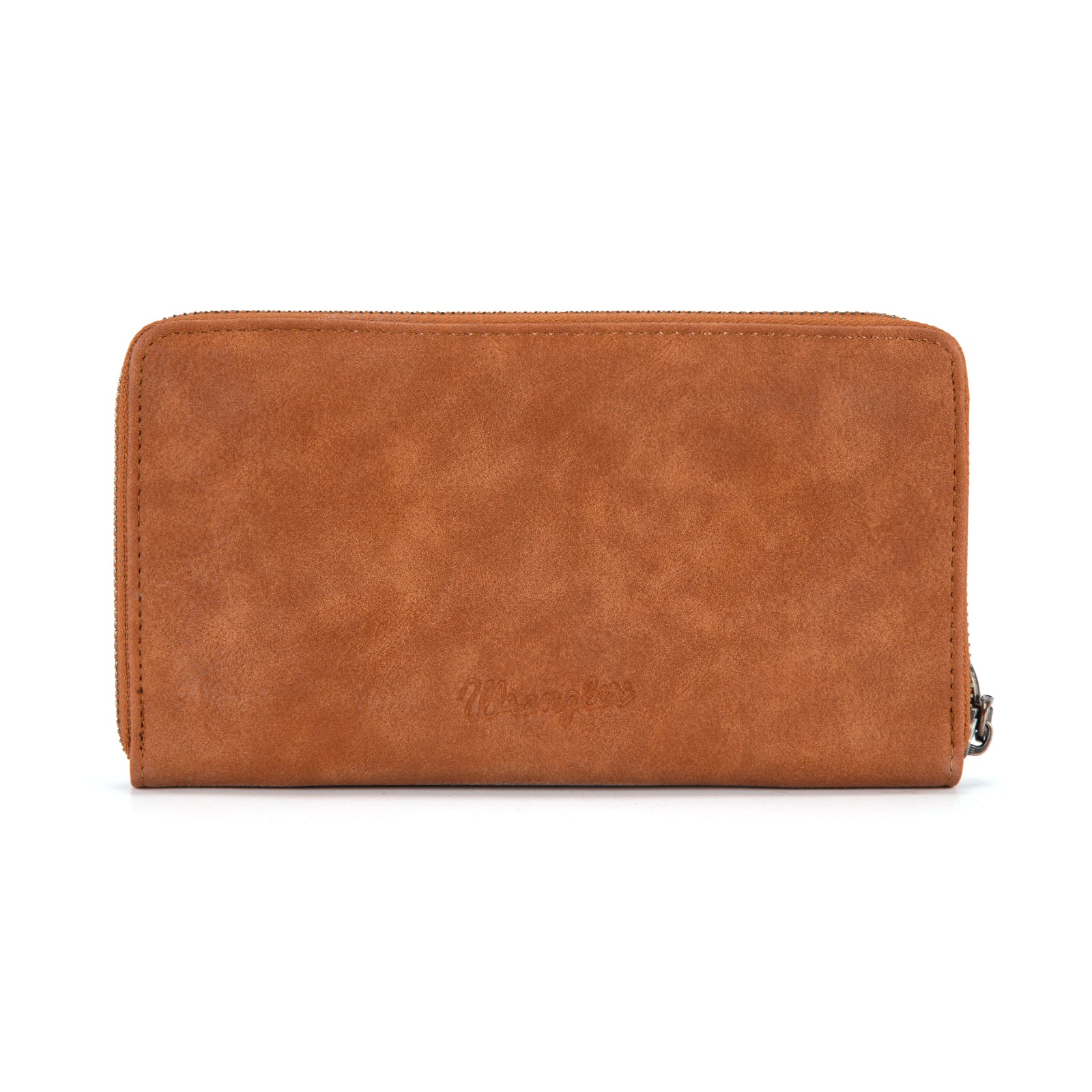 Classic Western style meets everyday function. This Wrangler zip-around wallet features a beautifully woven Aztec-inspired design on the front, adding texture and rustic charm to a timeless silhouette.