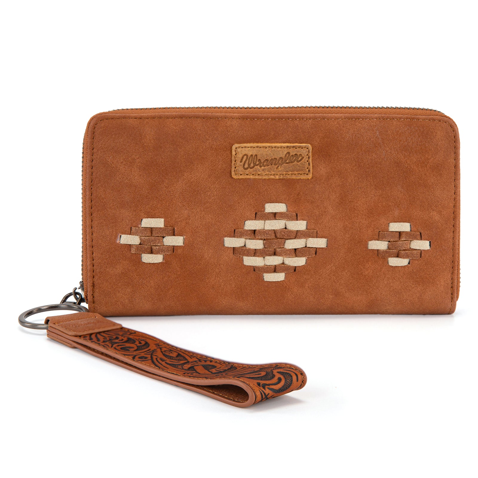 WG310-W006BR Wrangler Aztec Woven Zip Around Wallet with Wristlet –Brown