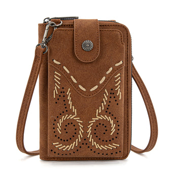 WG337-183 Wrangler Western Stitch RFID Phone Crossbody Wallet/Crossbody - Brown