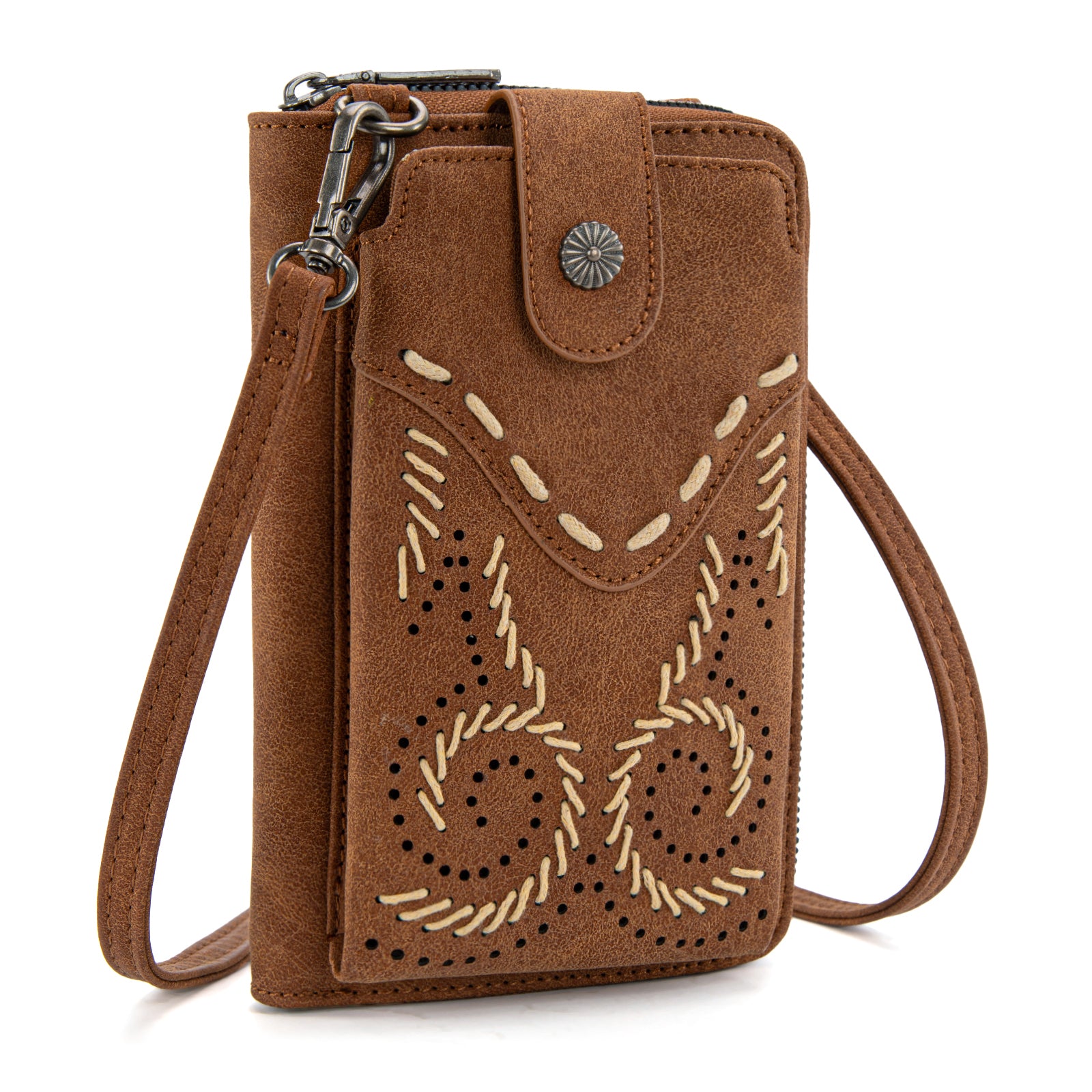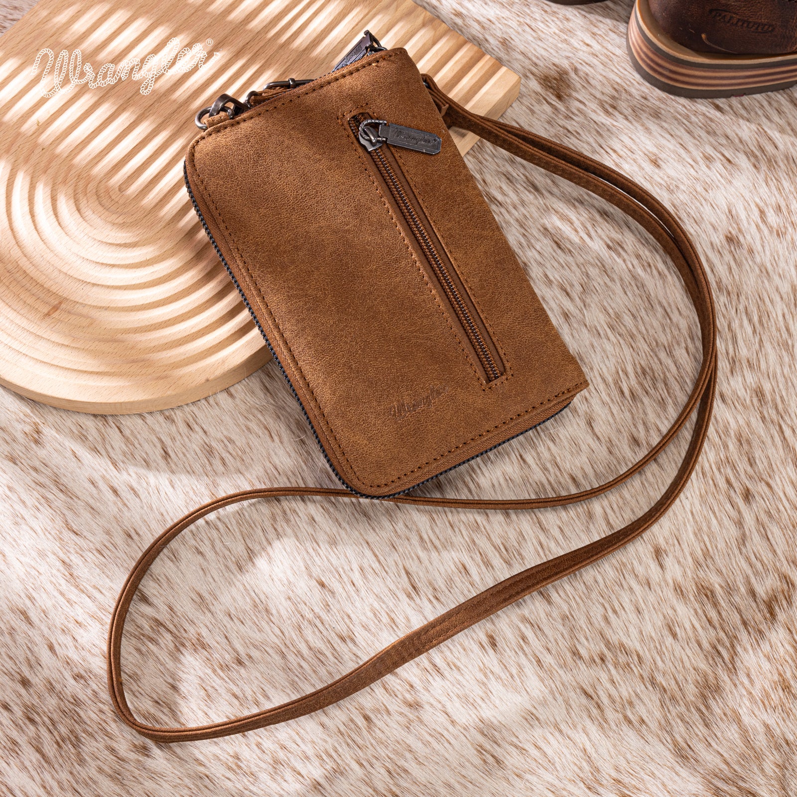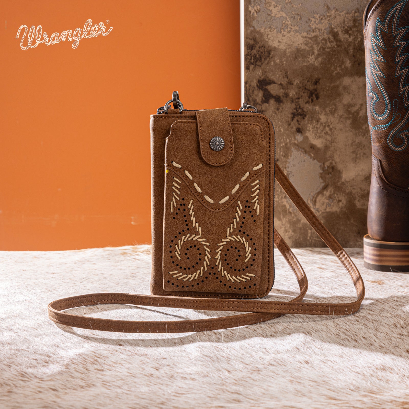 Compact and stylish, this Wrangler phone crossbody wallet features Western-inspired stitching and smart organization for everyday use.