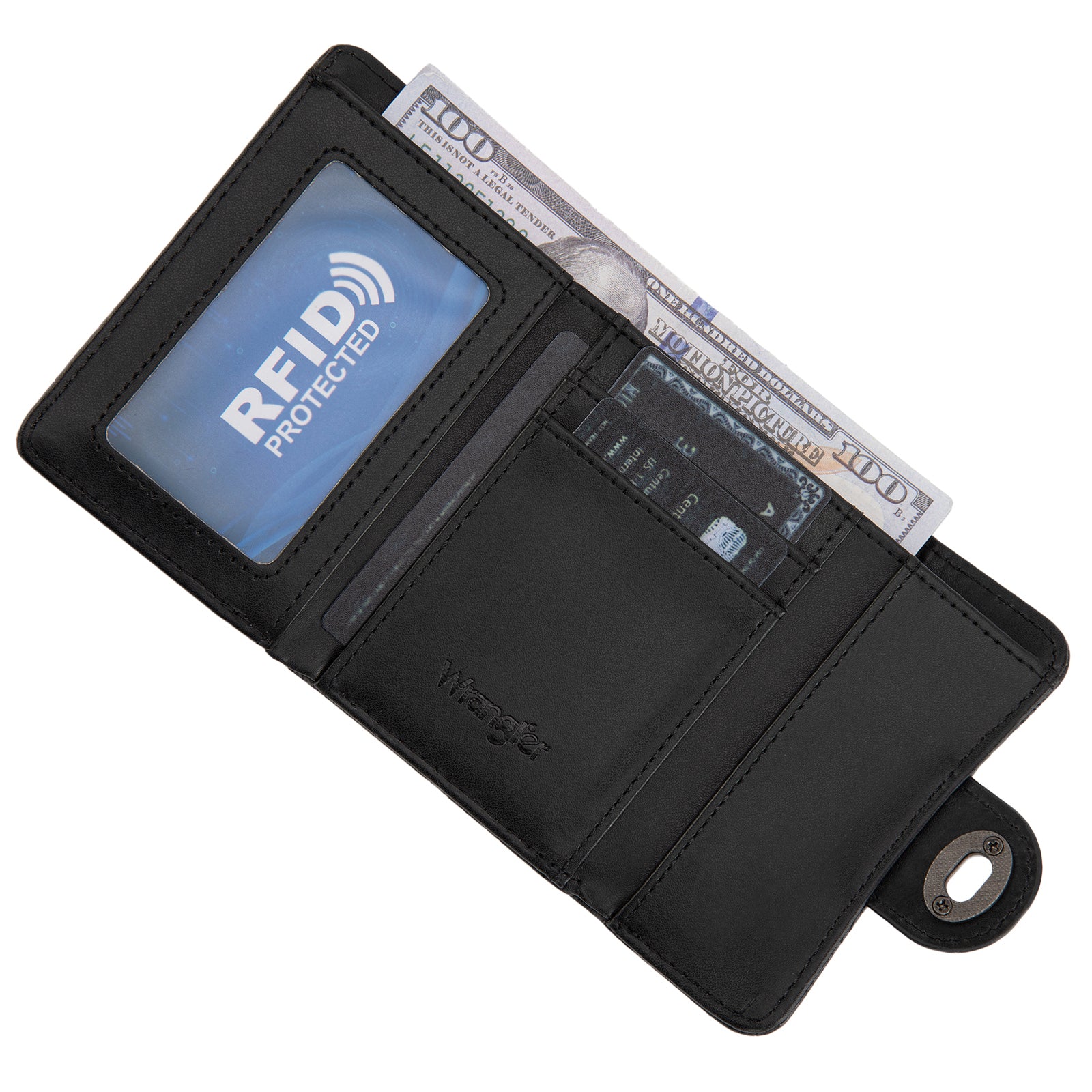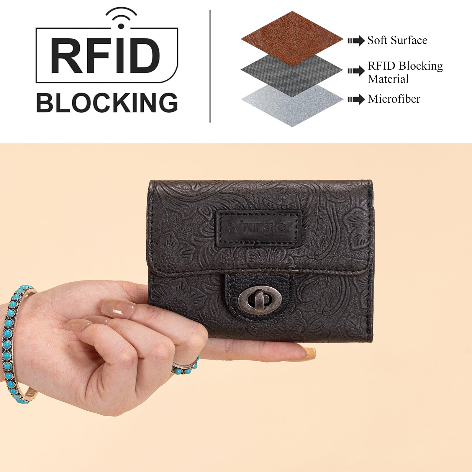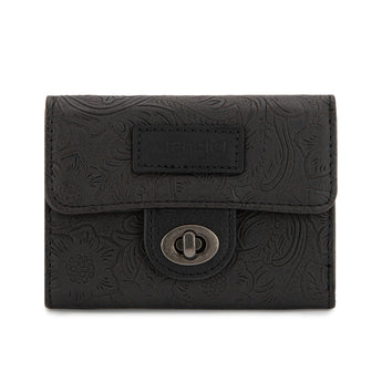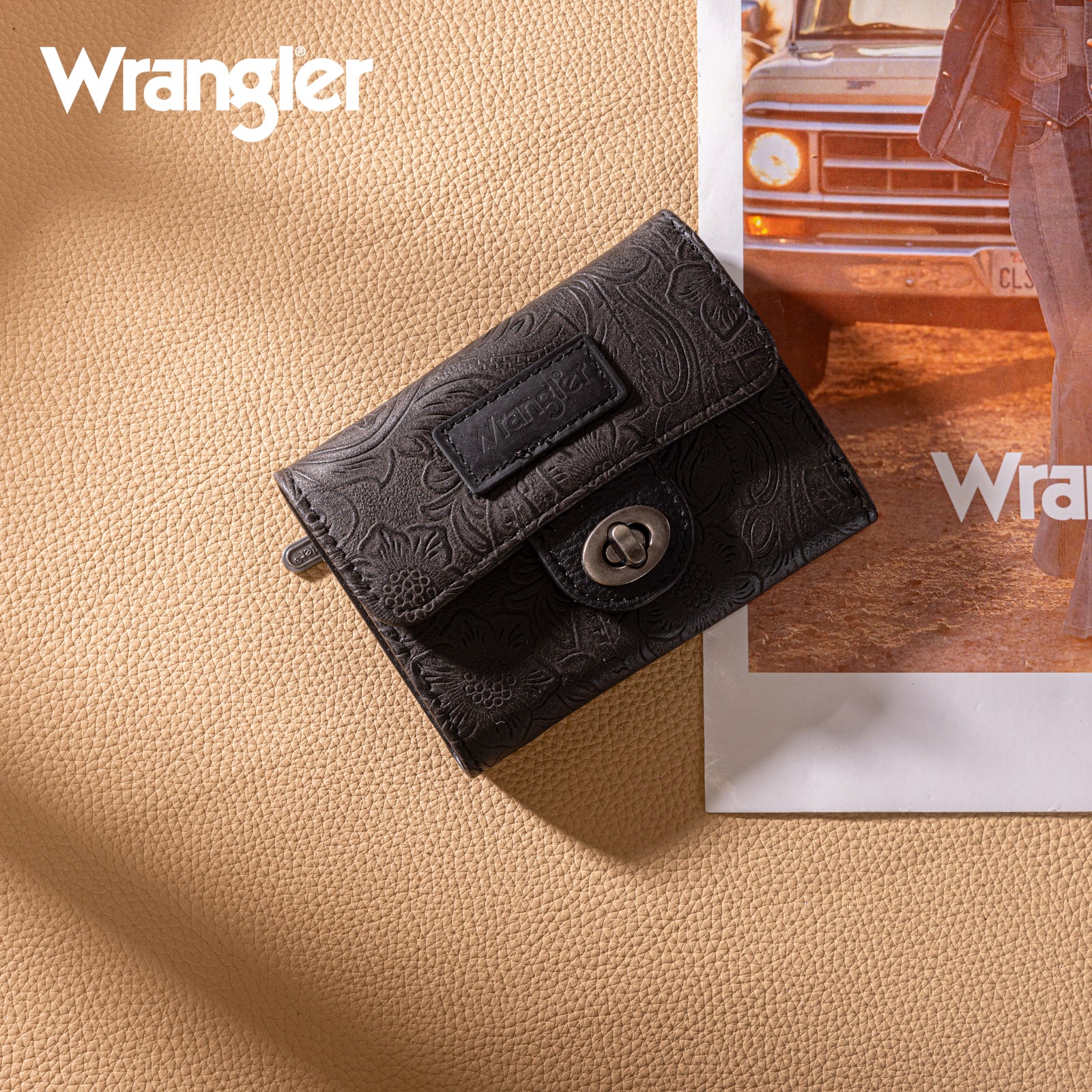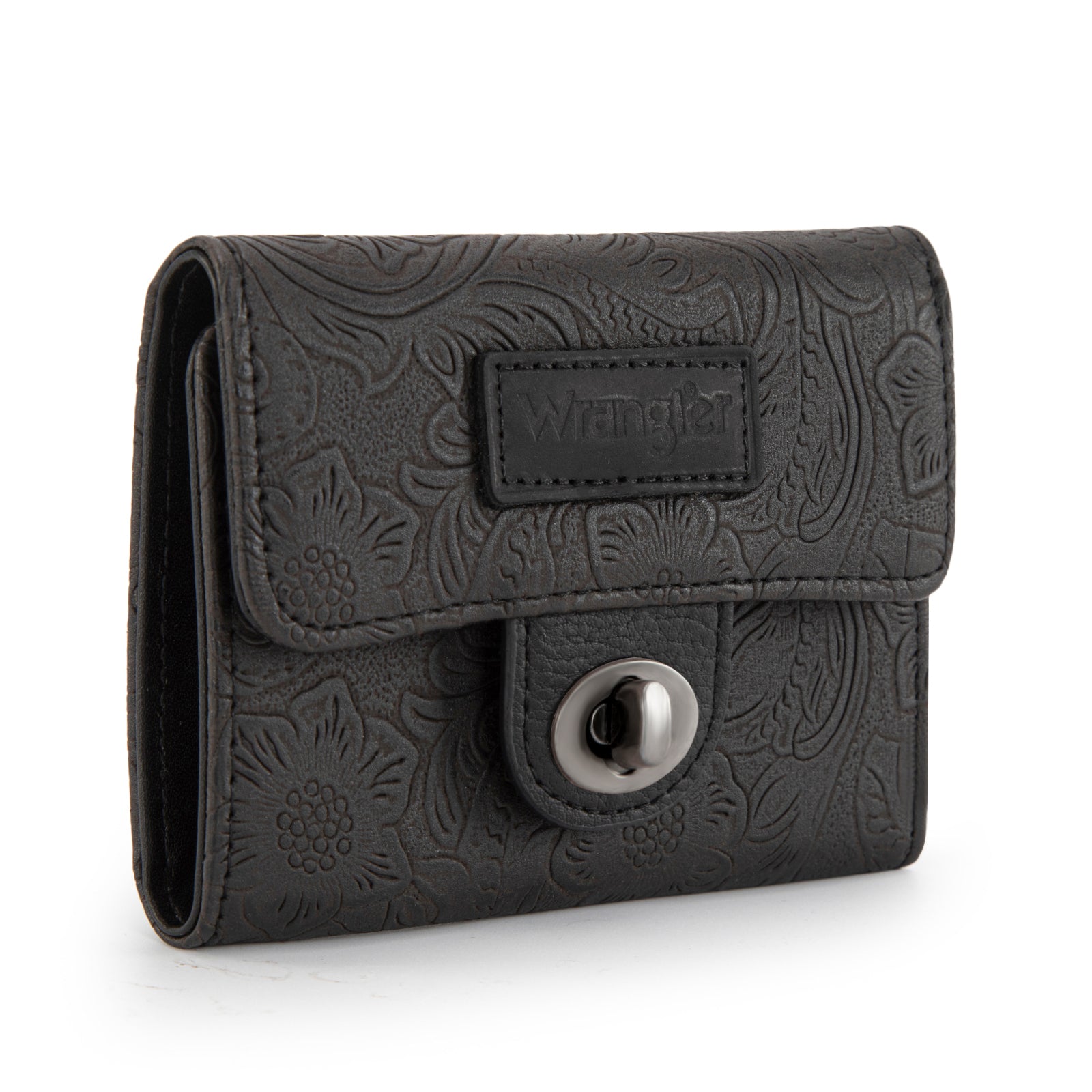 WG338-W100BK Wrangler Floral Embossed RFID Trifold Wallet -Black