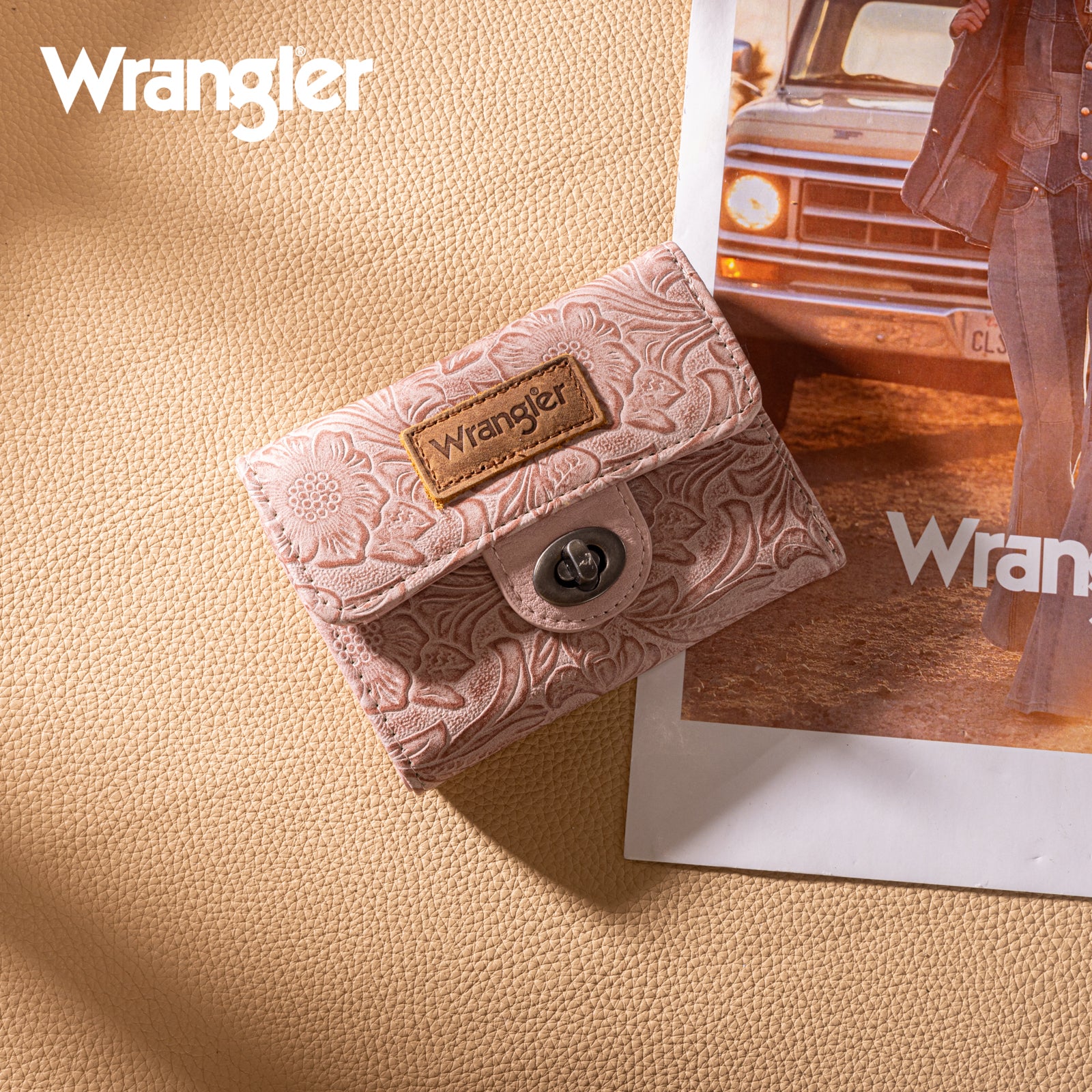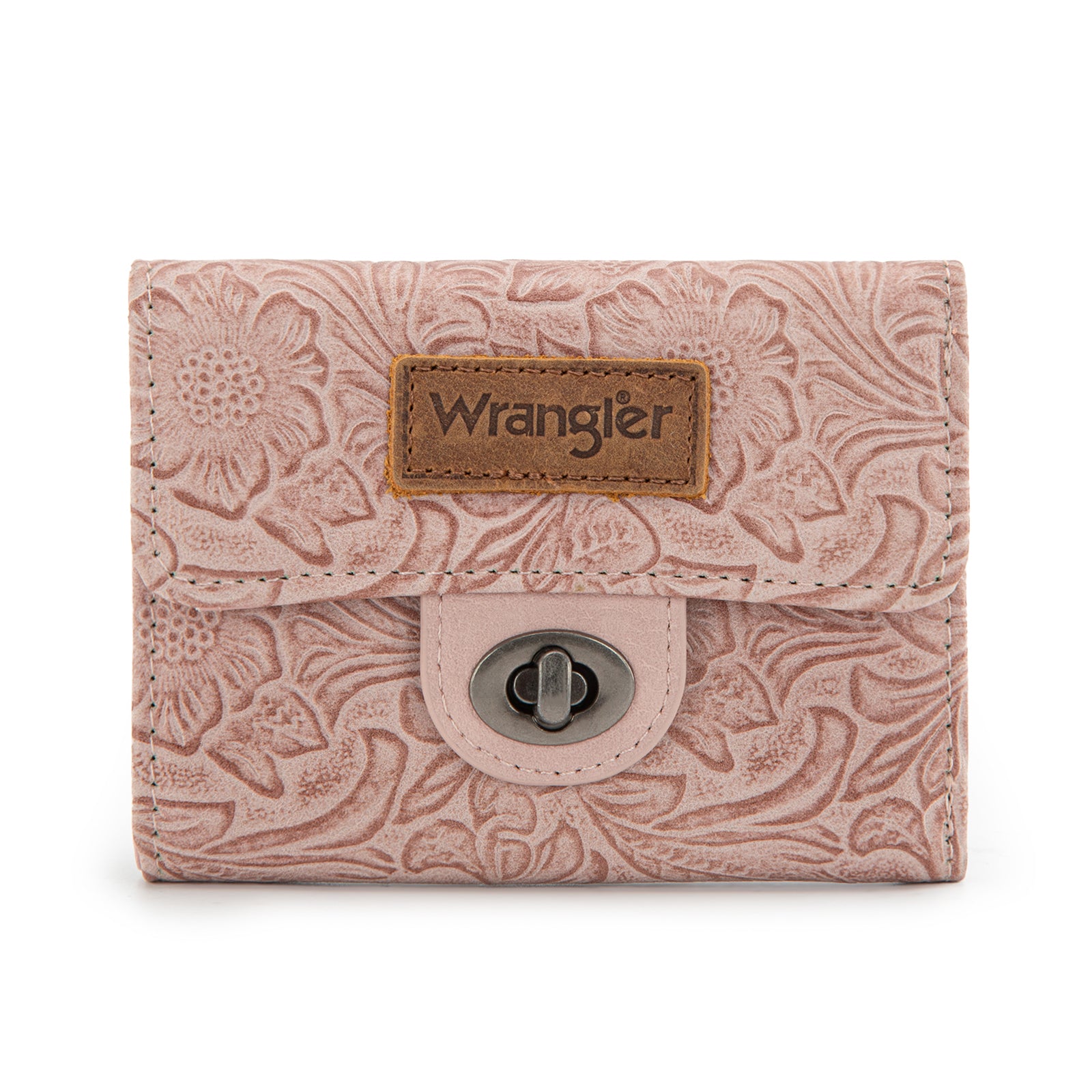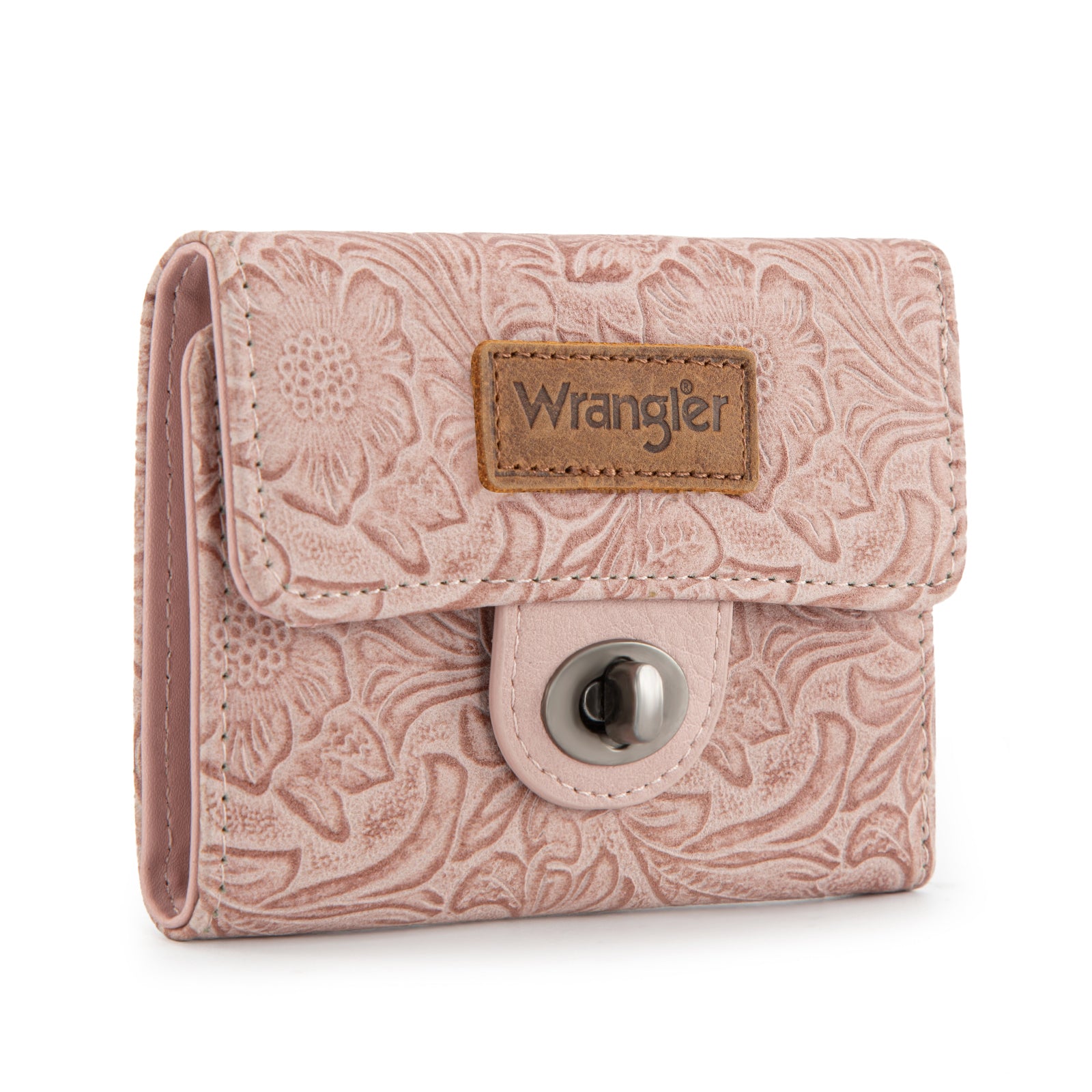 WG338-W100DPK Wrangler Floral Embossed RFID Trifold Wallet -Dark Pink