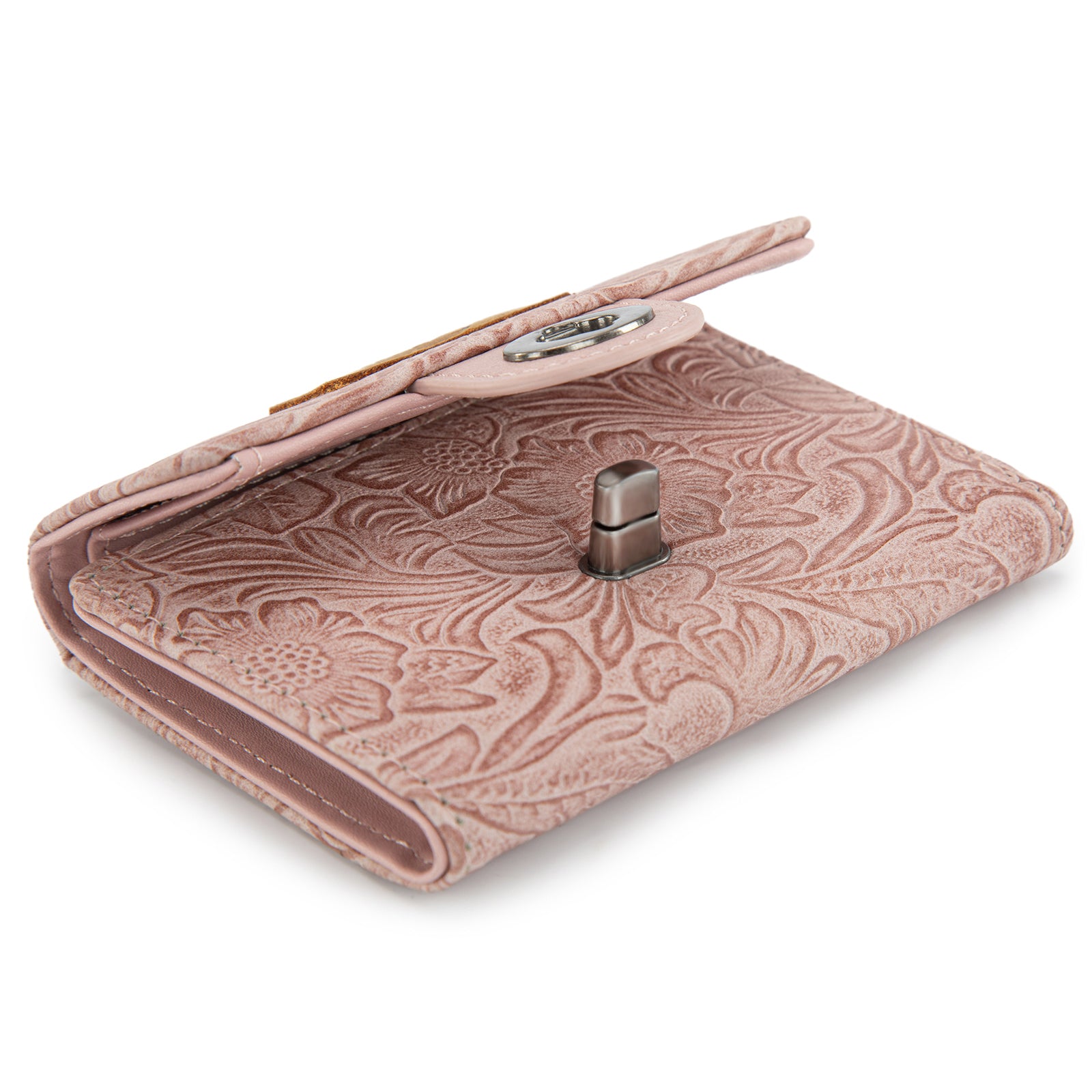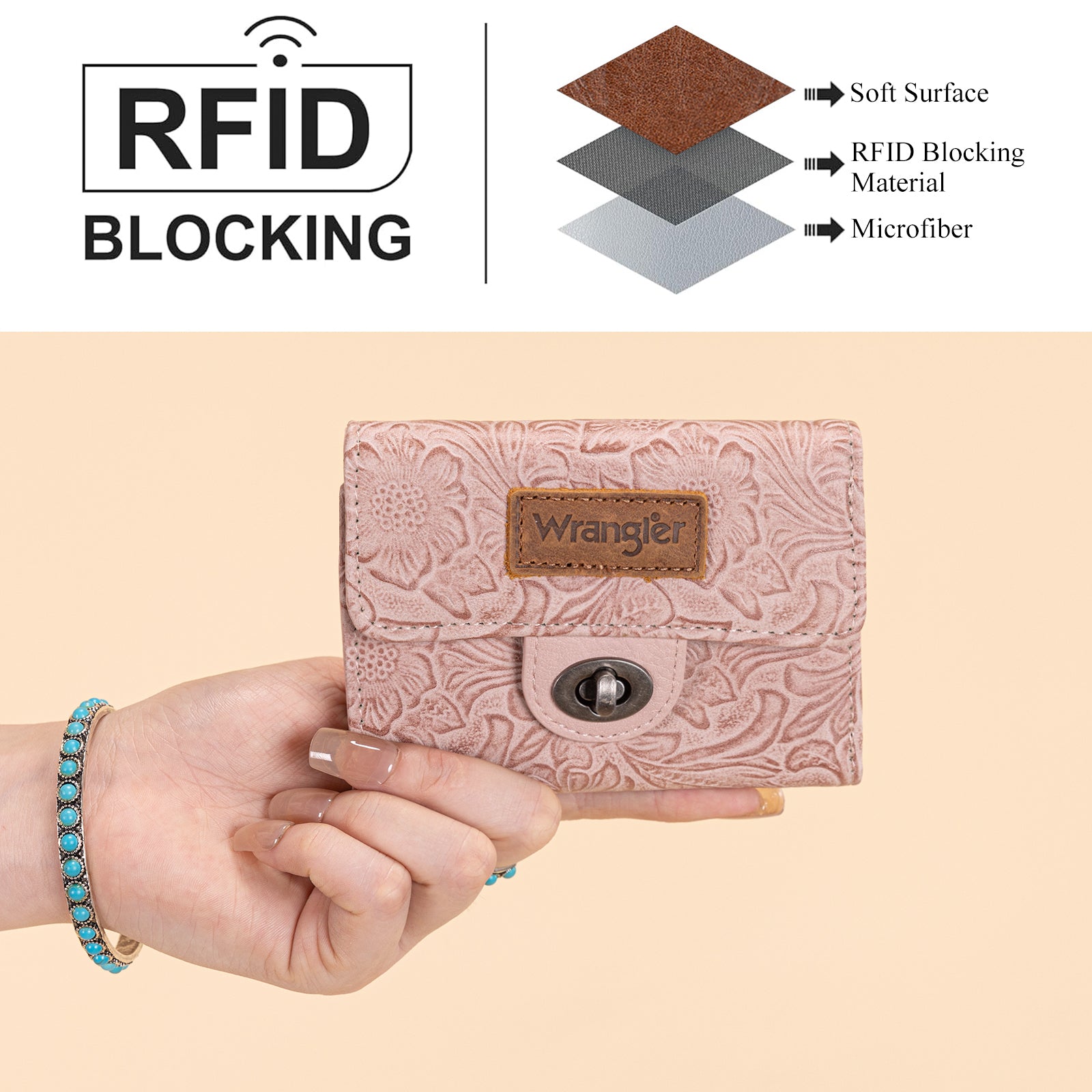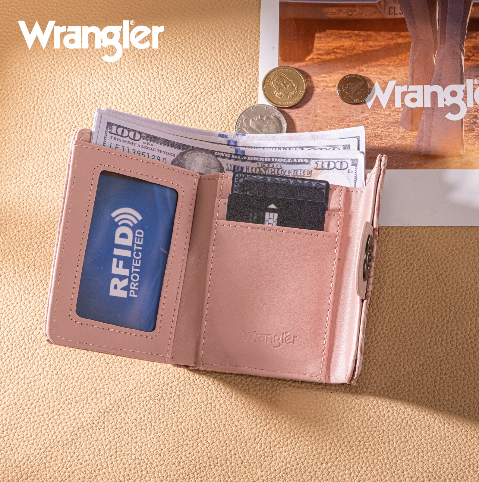 WG338-W100DPK Wrangler Floral Embossed RFID Trifold Wallet -Dark Pink