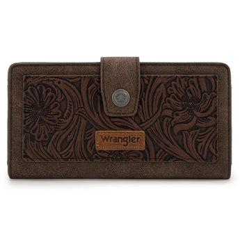 WG339-W080 Wrangler Western Floral Tooled RFID Wallet - Coffee