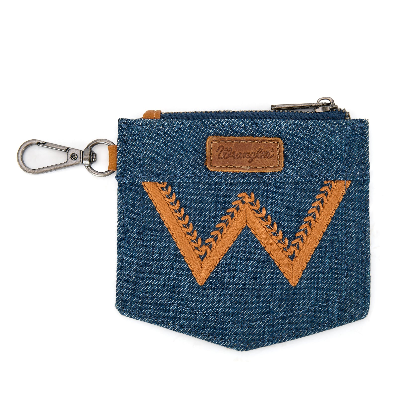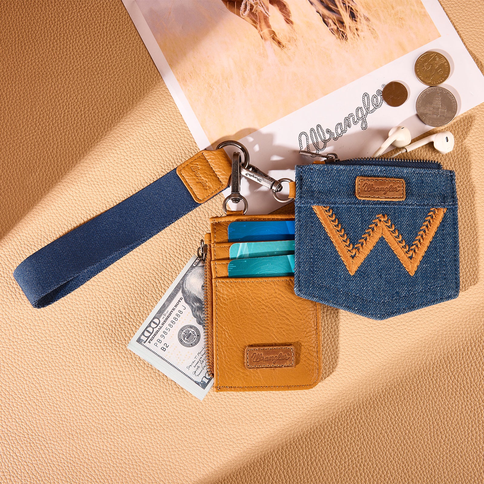 WG367-W119 Wrangler logo "W" Embroidered Dual Pouch Wristlet -Light Brown