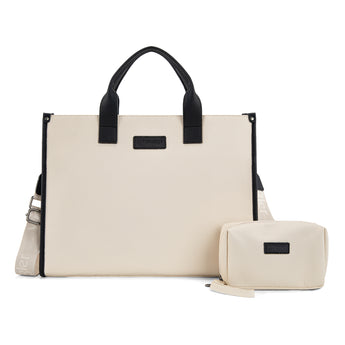 WG390-8110 Wrangler Structured Work Tote/Large Carry-All Tote/Crossbody with Pouch - Black-Beige