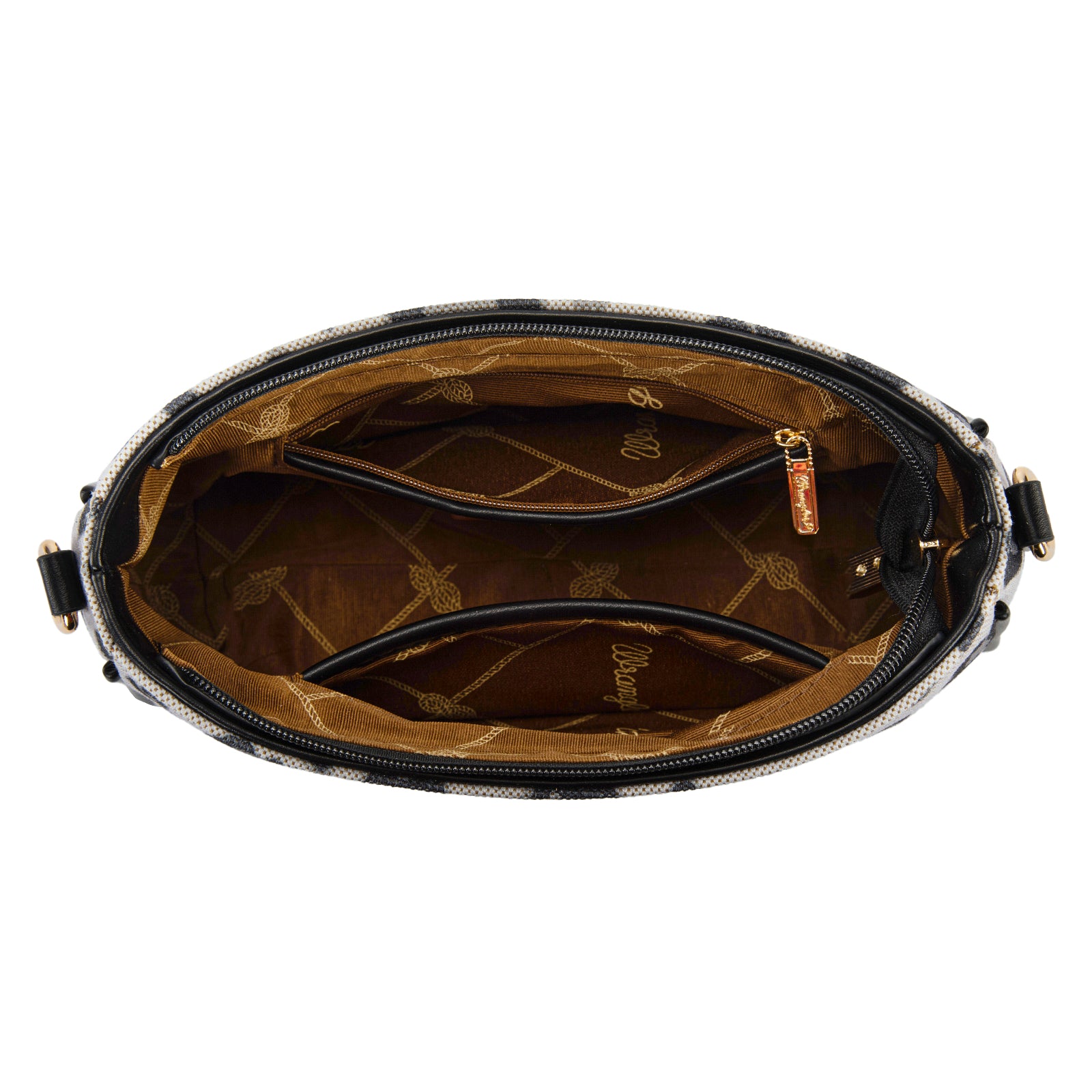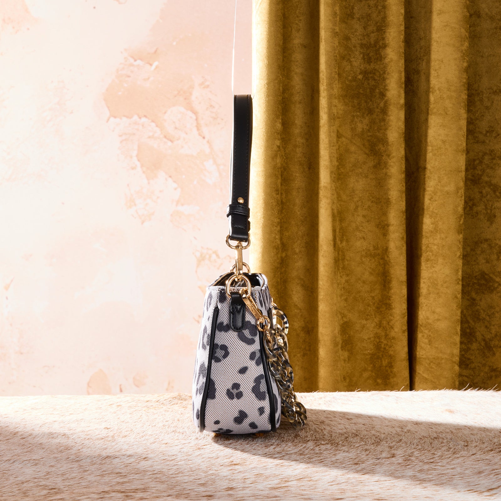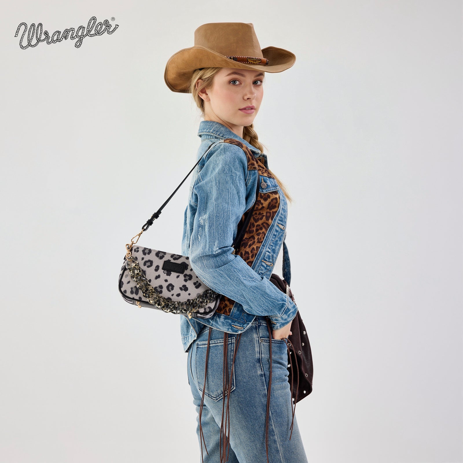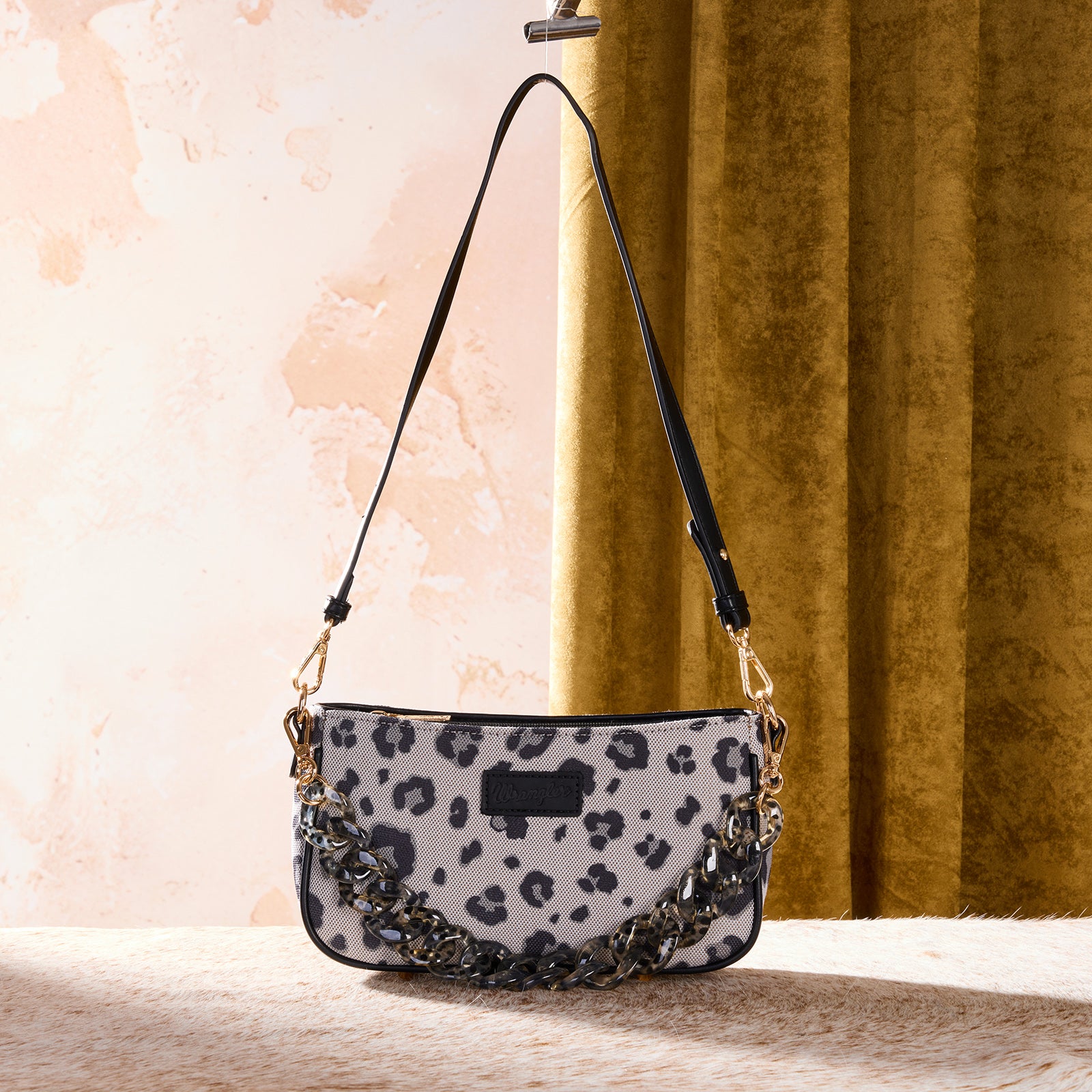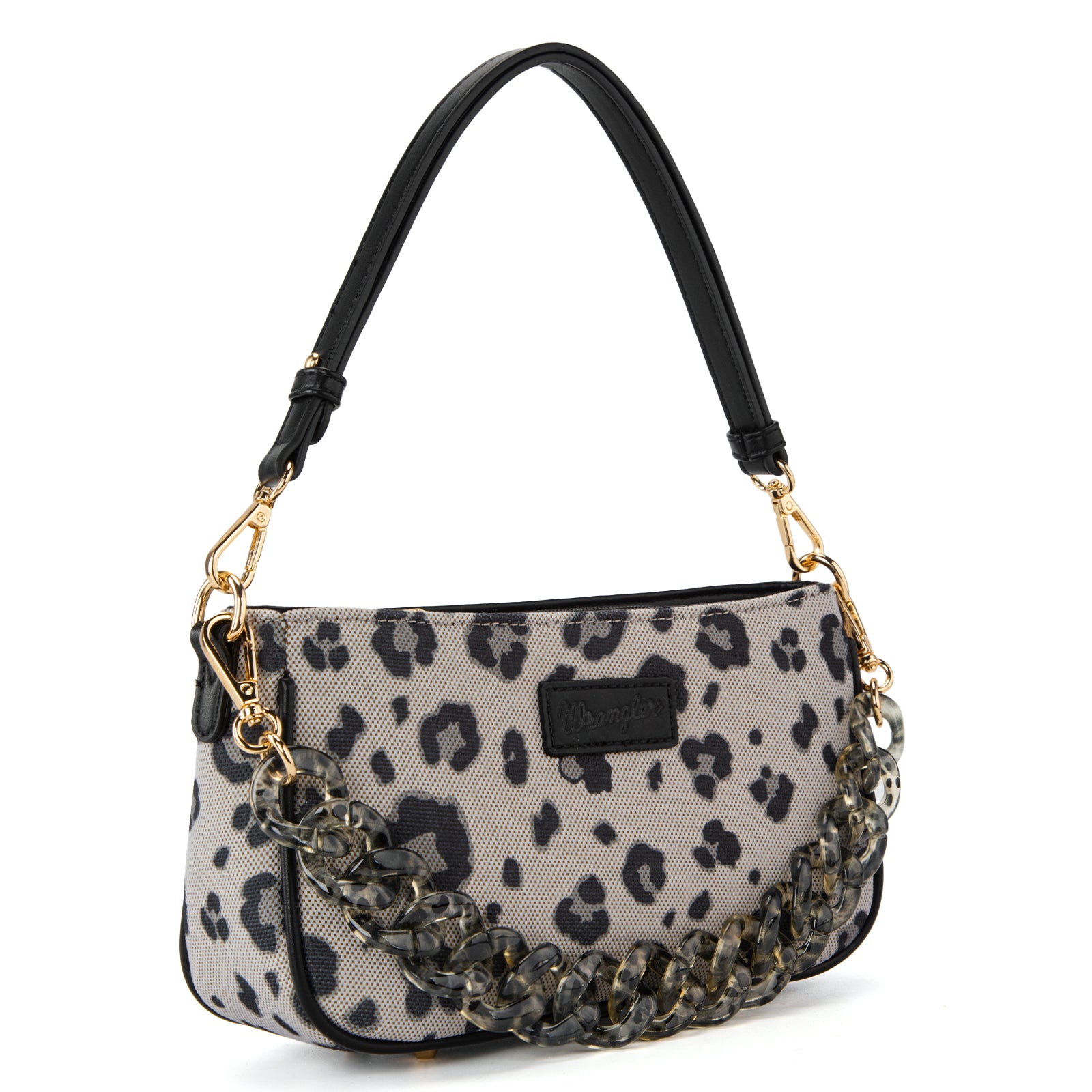 WG436-818BK Wrangler Leopard Print Canvas Shoulder Bag with Chain Strap -Black