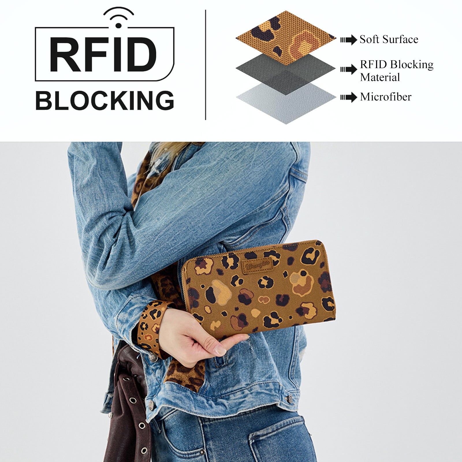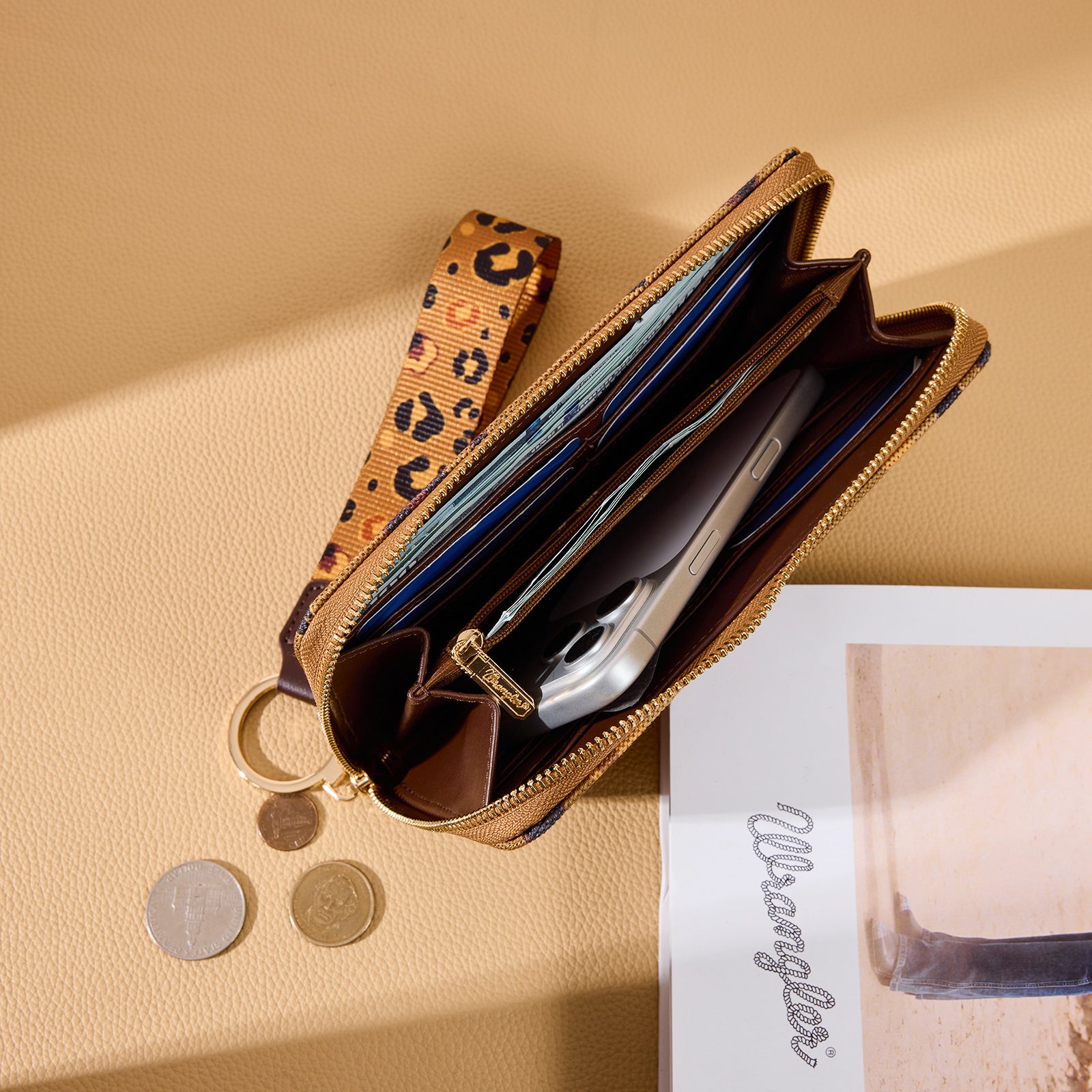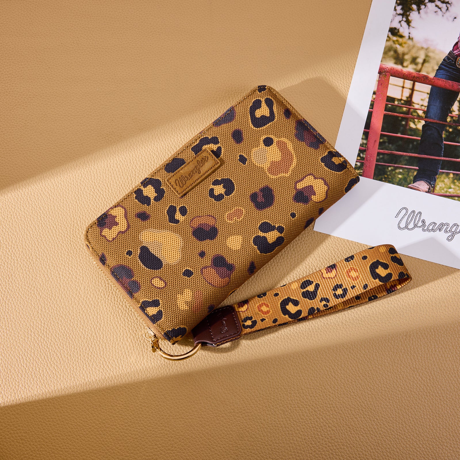 WG436-W126CF Wrangler Leopard Print Wallet/Wristlet - Coffee