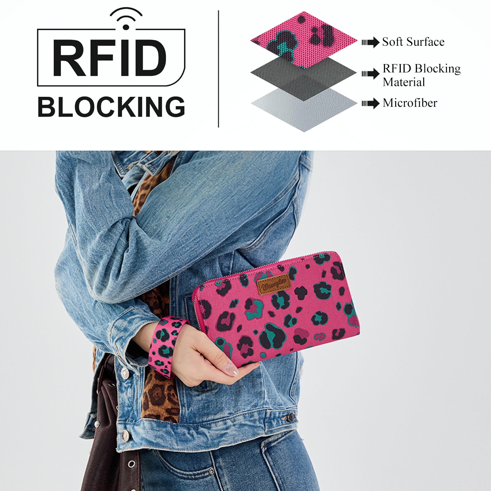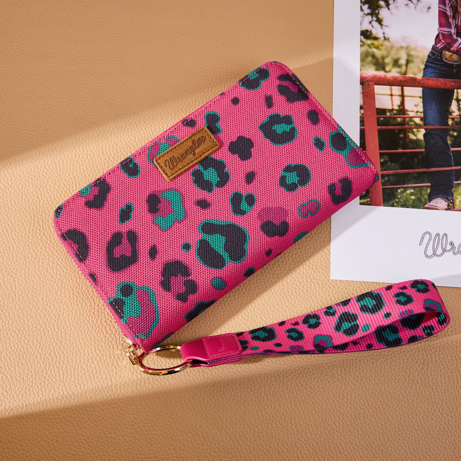 WG436-W126HPK Wrangler Leopard Print Wallet/Wristlet - Hot Pink