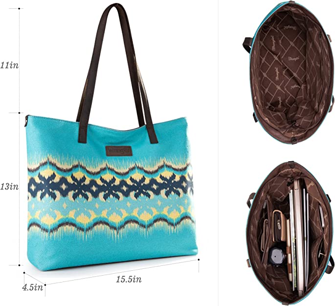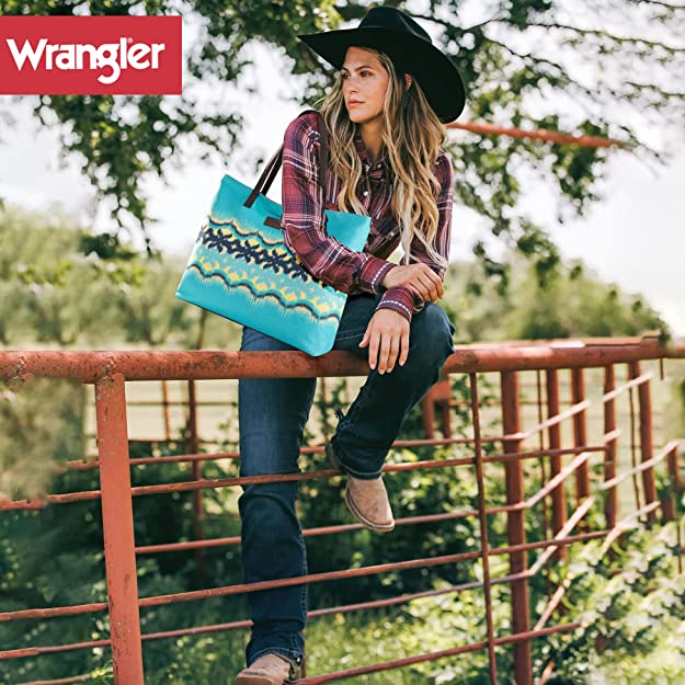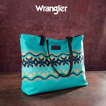WG53-8112 Wrangler Southwestern Dual Sided Print Canvas Tote Bag - Green