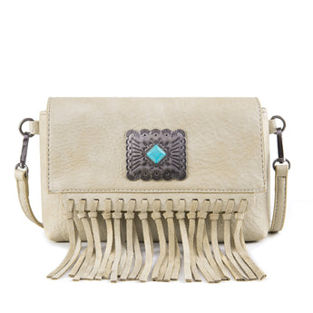 WG61-181 Wrangler Turquoise Stone Concho Fringe Clutch/Crossbody - Beige