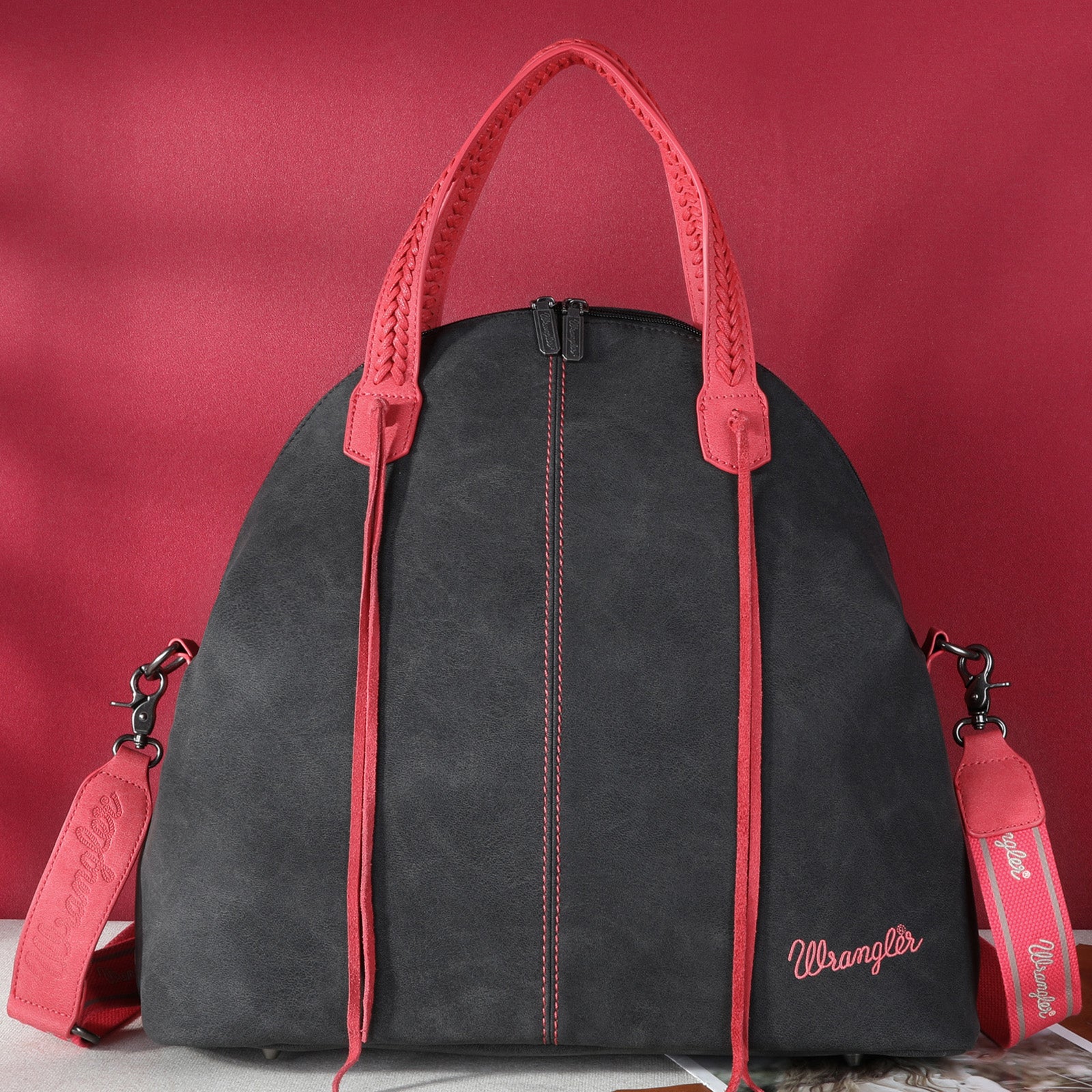 - Detachable/adjustable embossed wrangler logo crossbody strap included
