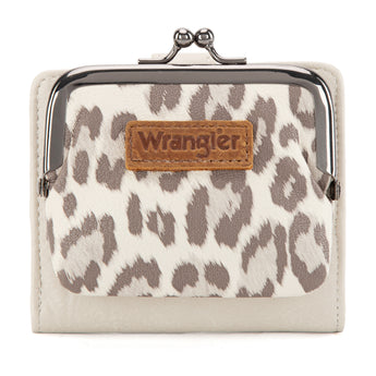 WWG366-W116BG Wrangler Western Leopard Print Small Bi-Fold with Kiss Clasp Coin Purse -Beige