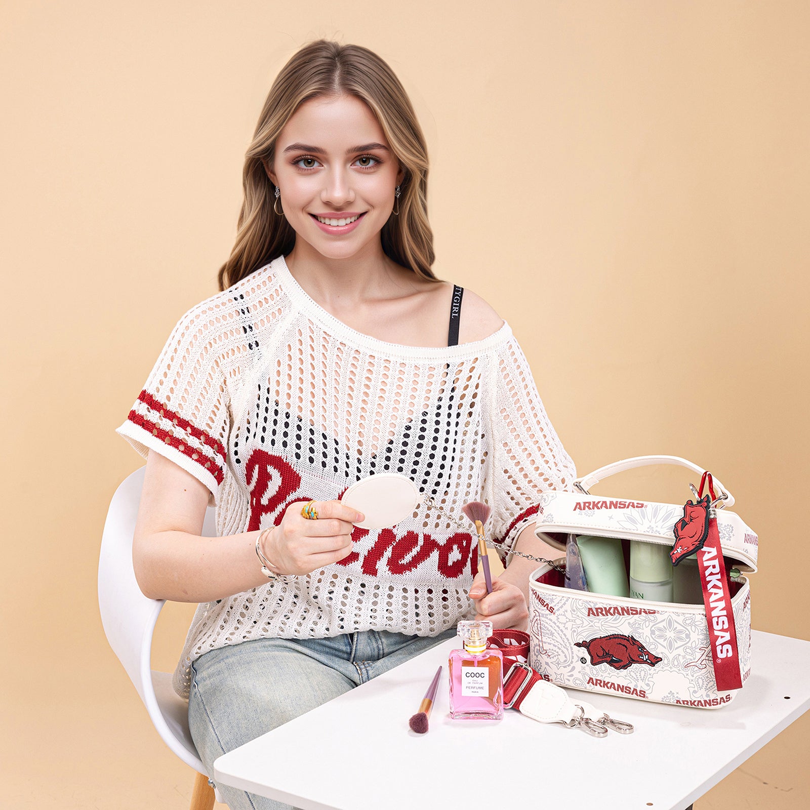 NC-AFU007BG University of Arkansas Razorbacks Vanity Top Handle-Bag -Beige