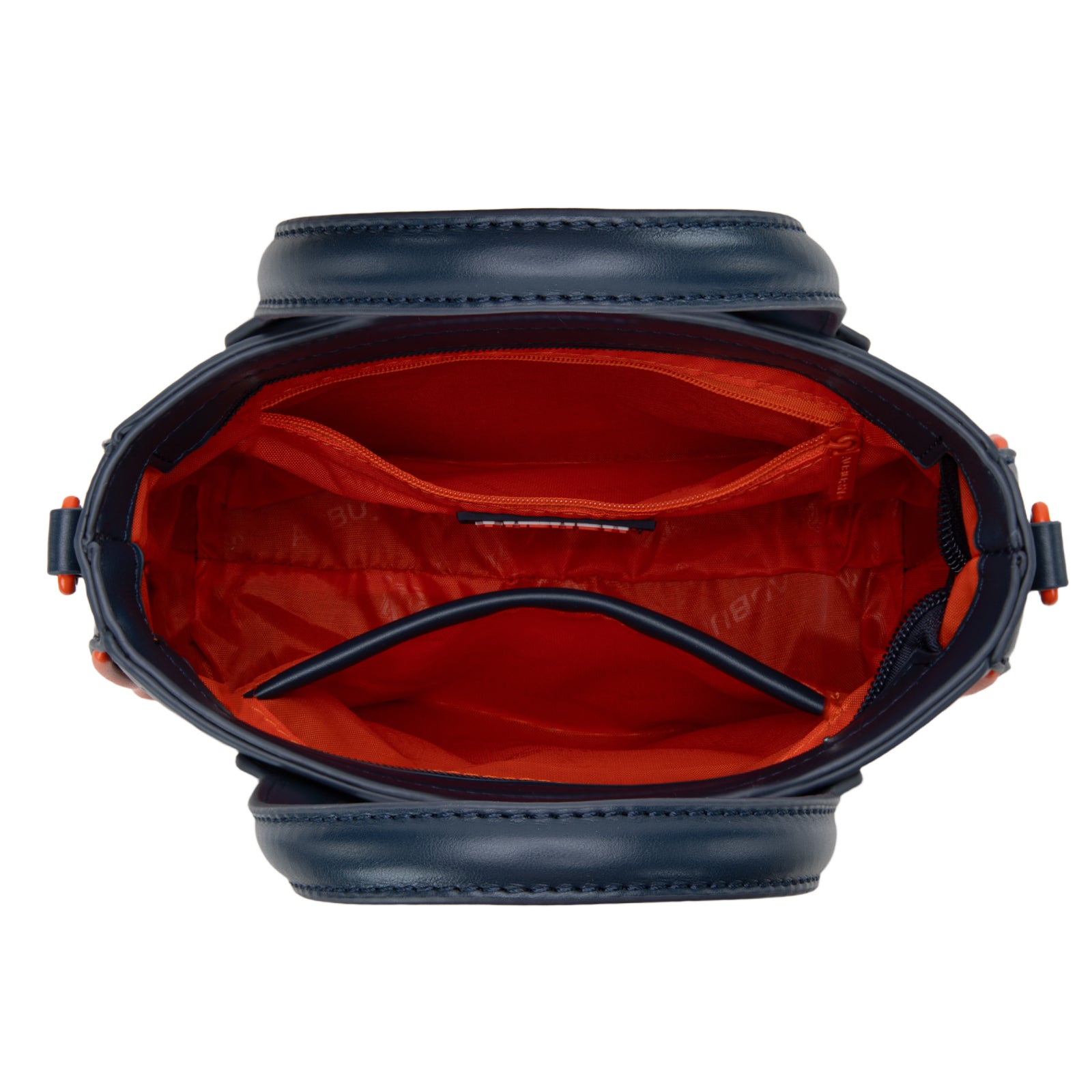 - Inside of the bag includes a zippered pocket and an open pocket