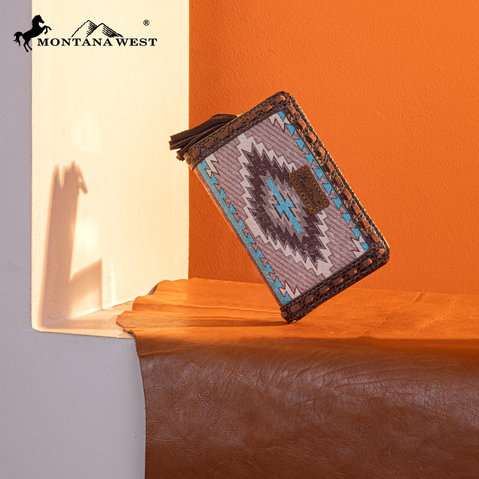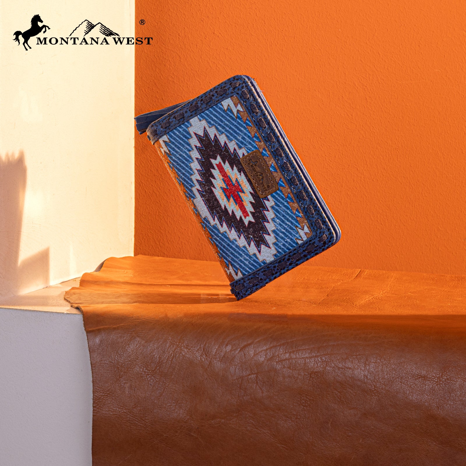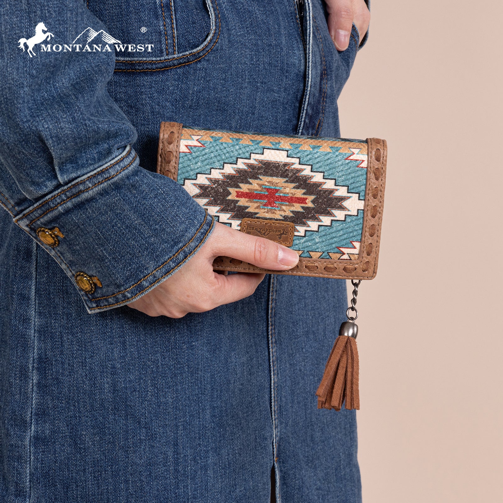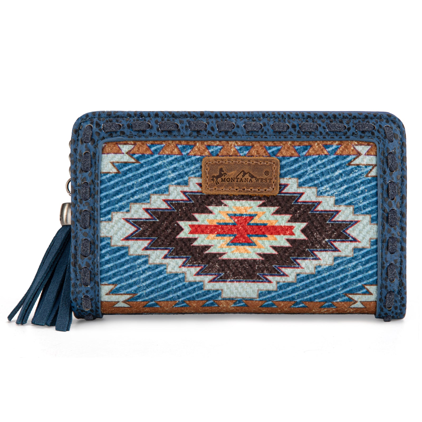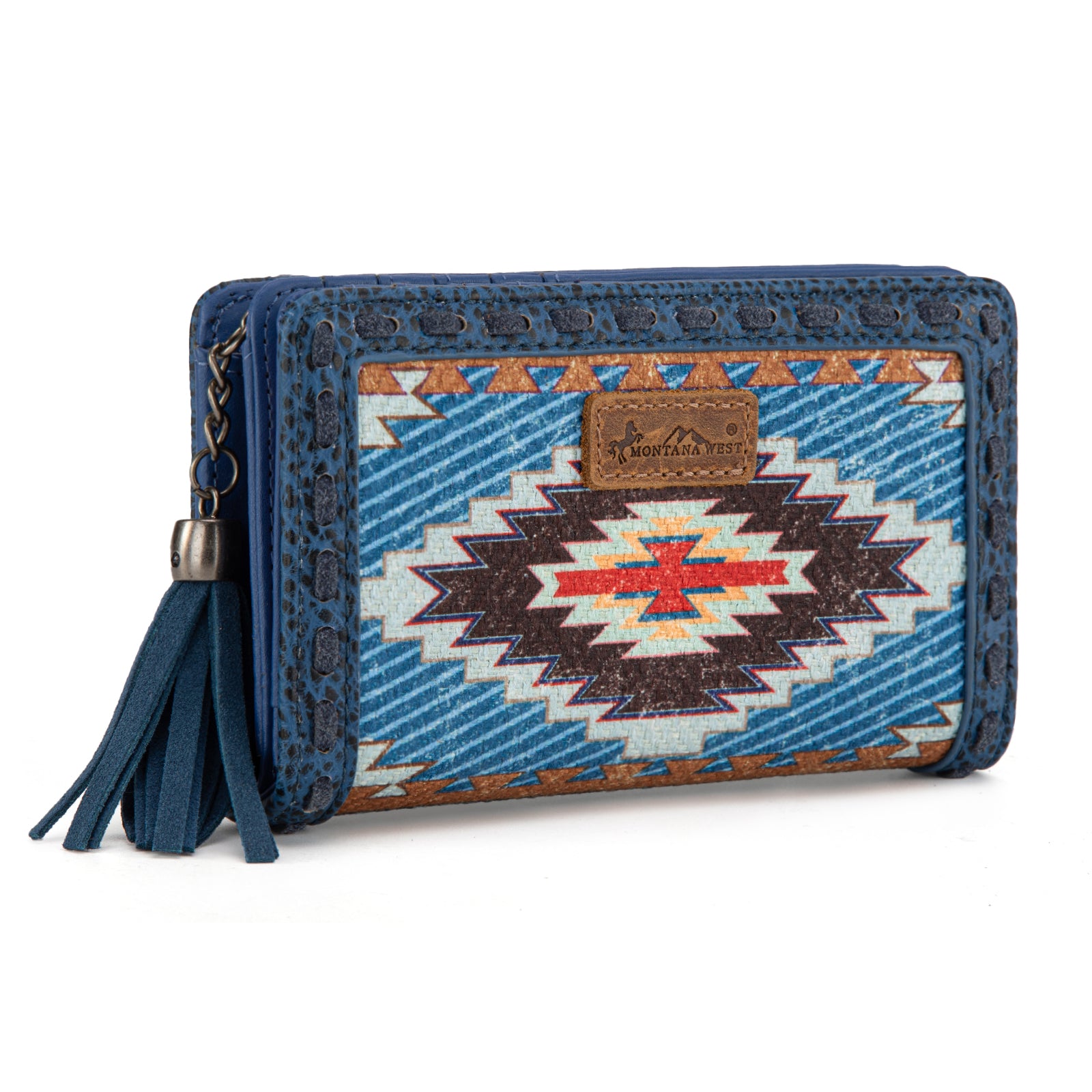 MW1316-W020 Montana West Tooled Aztec Denim Bi-Fold Wallet