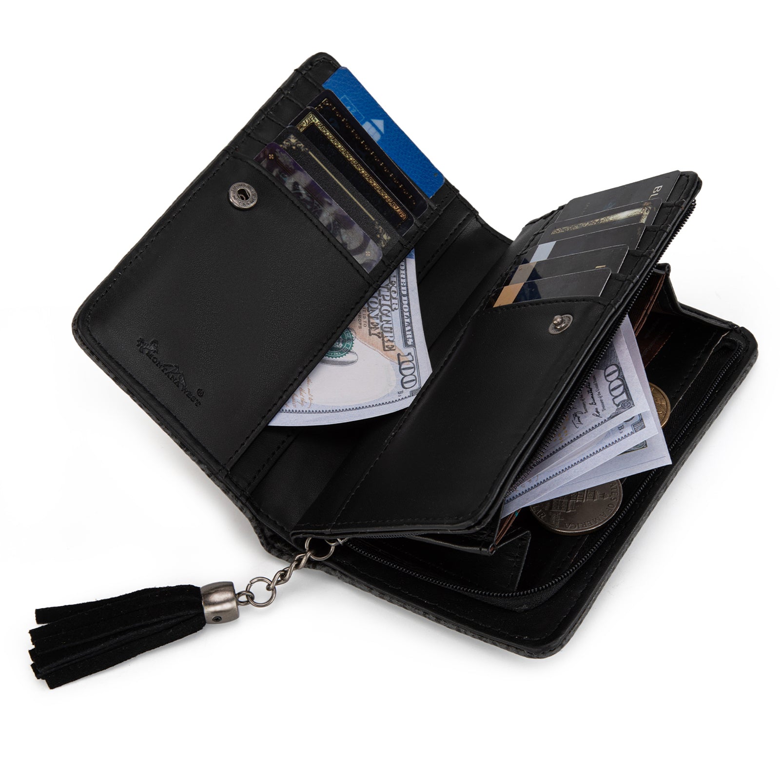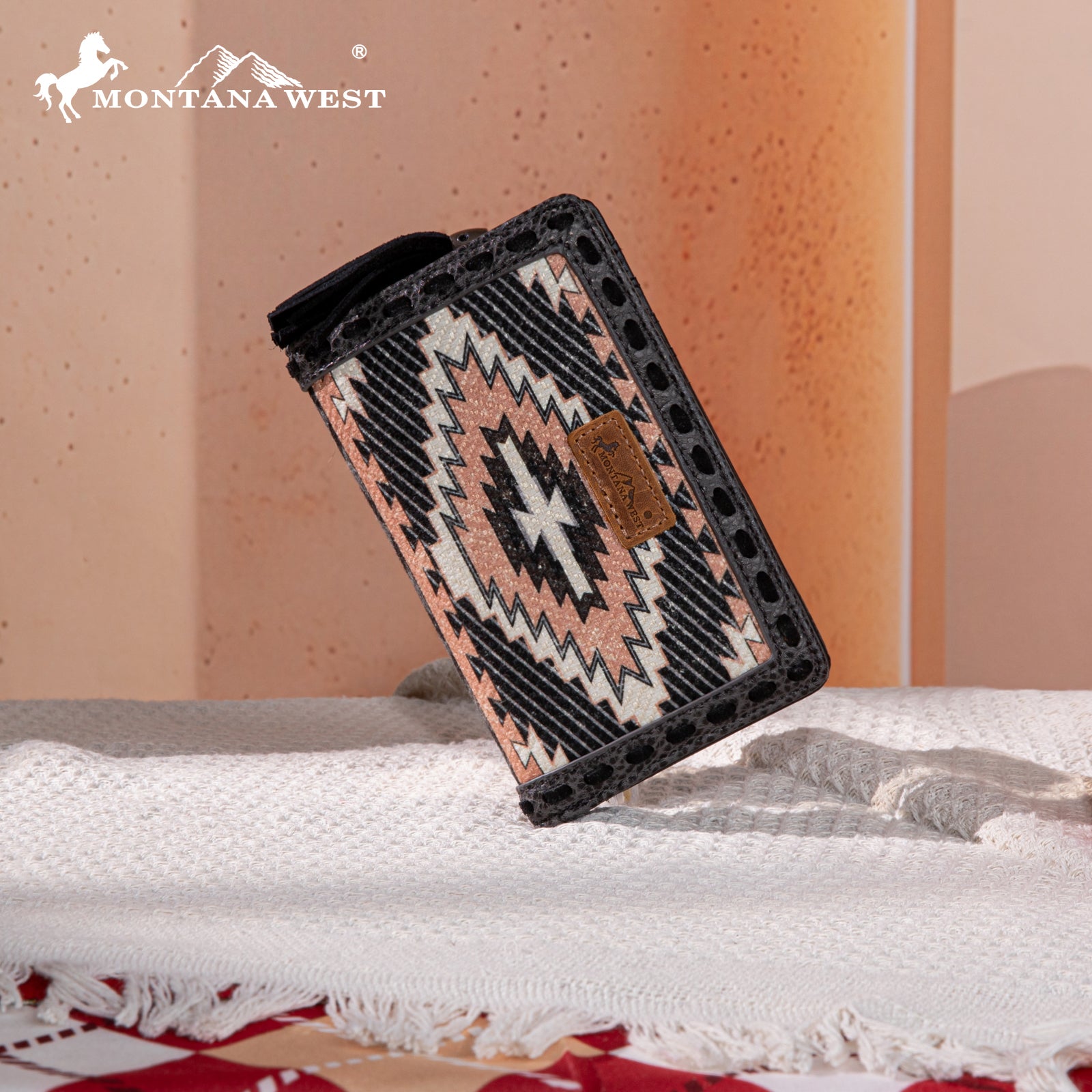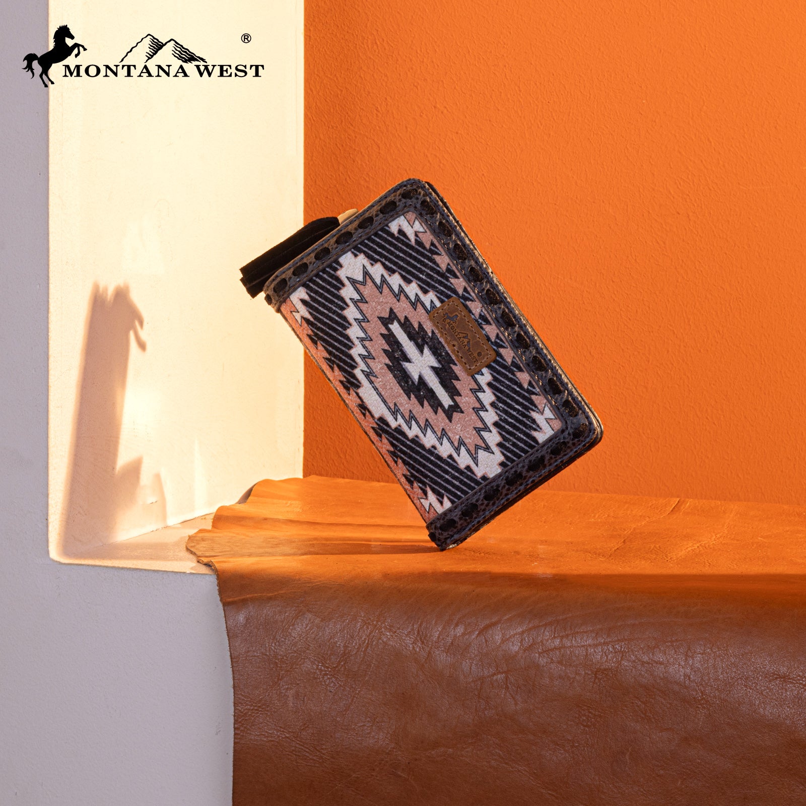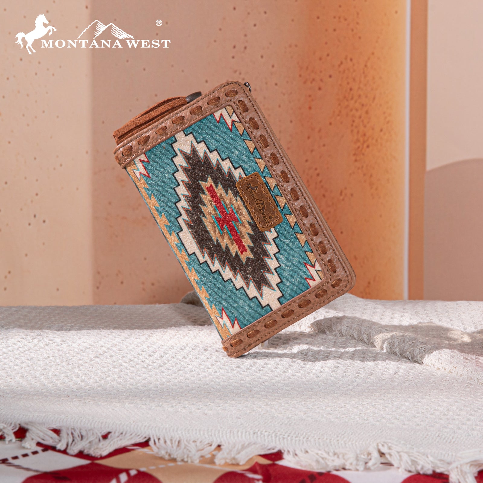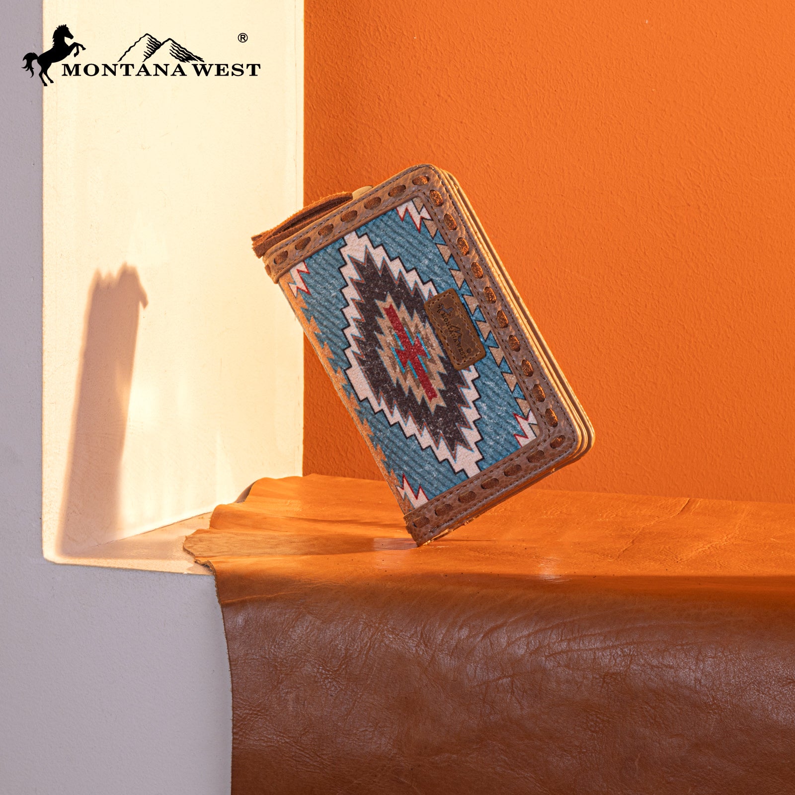 MW1316-W020 Montana West Tooled Aztec Denim Bi-Fold Wallet