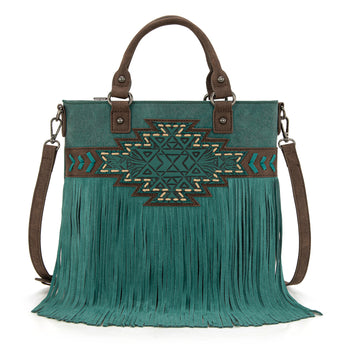 TR196G-8260 Trinity Ranch Aztec Tooled Fringe Concealed Carry Tote/Crossbody