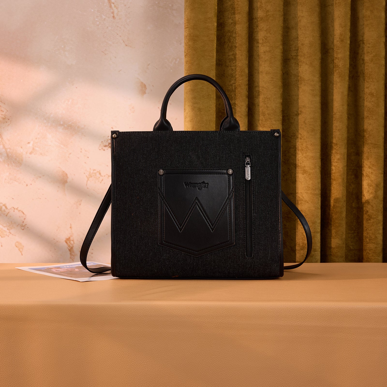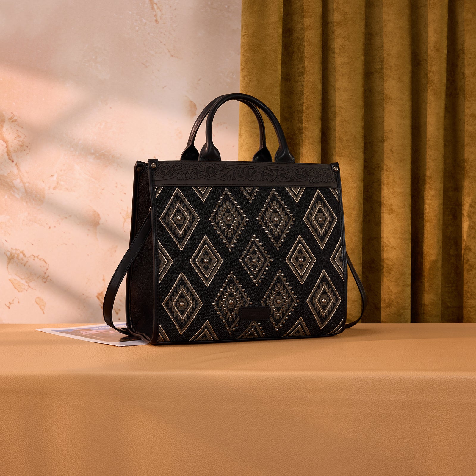 WG435-8119BK Wrangler Aztec Studded Denim Tote & Crossbody Bag - Black