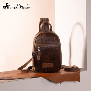 MWR-066 Montana West Genuine Hair-On Cowhide Convertible Sling Backpack -Brown