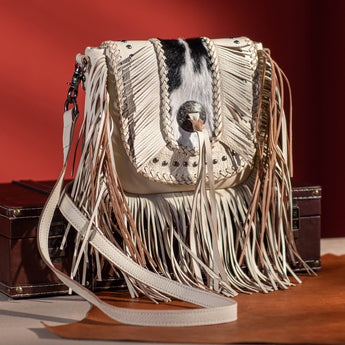 MWR-054 Montana West Genuine Leather Hair-On Cowhide Fringe Bohemian Crossbody - Beige
