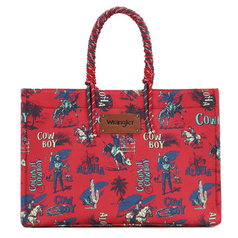 WG284D-8119 Wrangler COWBOY Dual Sided Print Canvas Wide Tote - Red