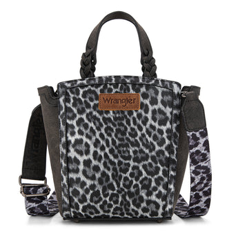 WG296-8014BK Wrangler Leopard Print Braided Handle Tote/Crossbody - Black