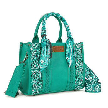 WG331-8120STQ Wrangler Braided Paisley Bandana Tote Bag - Turquoise