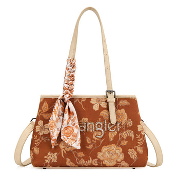 WG510-8130BR Wrangler Floral Printed Braided Scarf Tote/Crossbody Bag - Brown