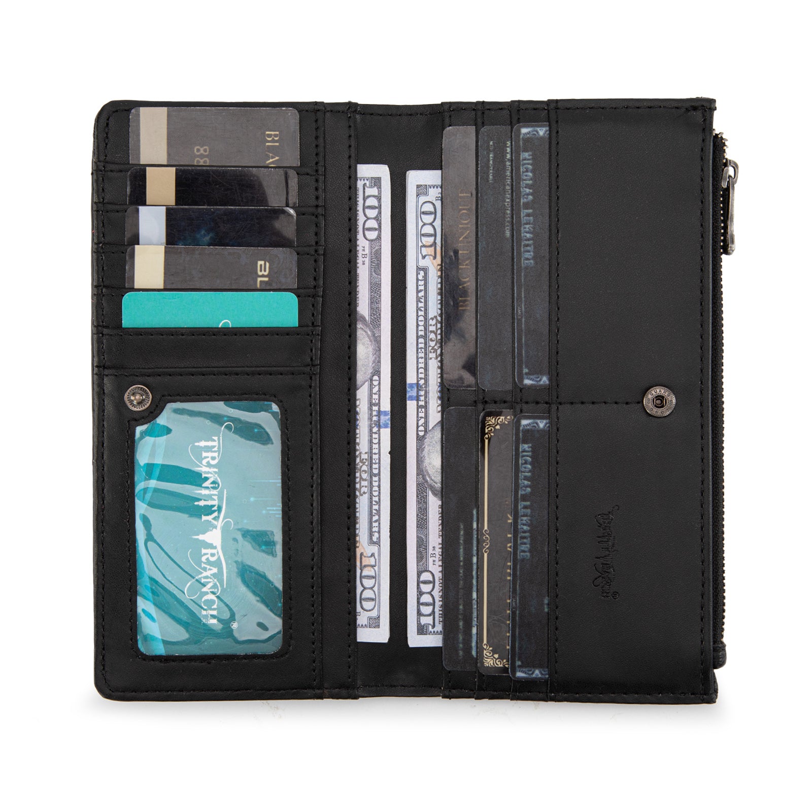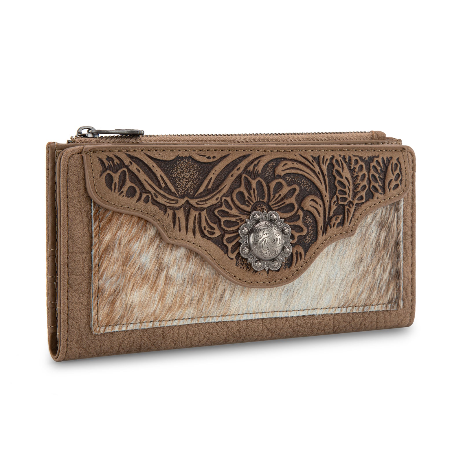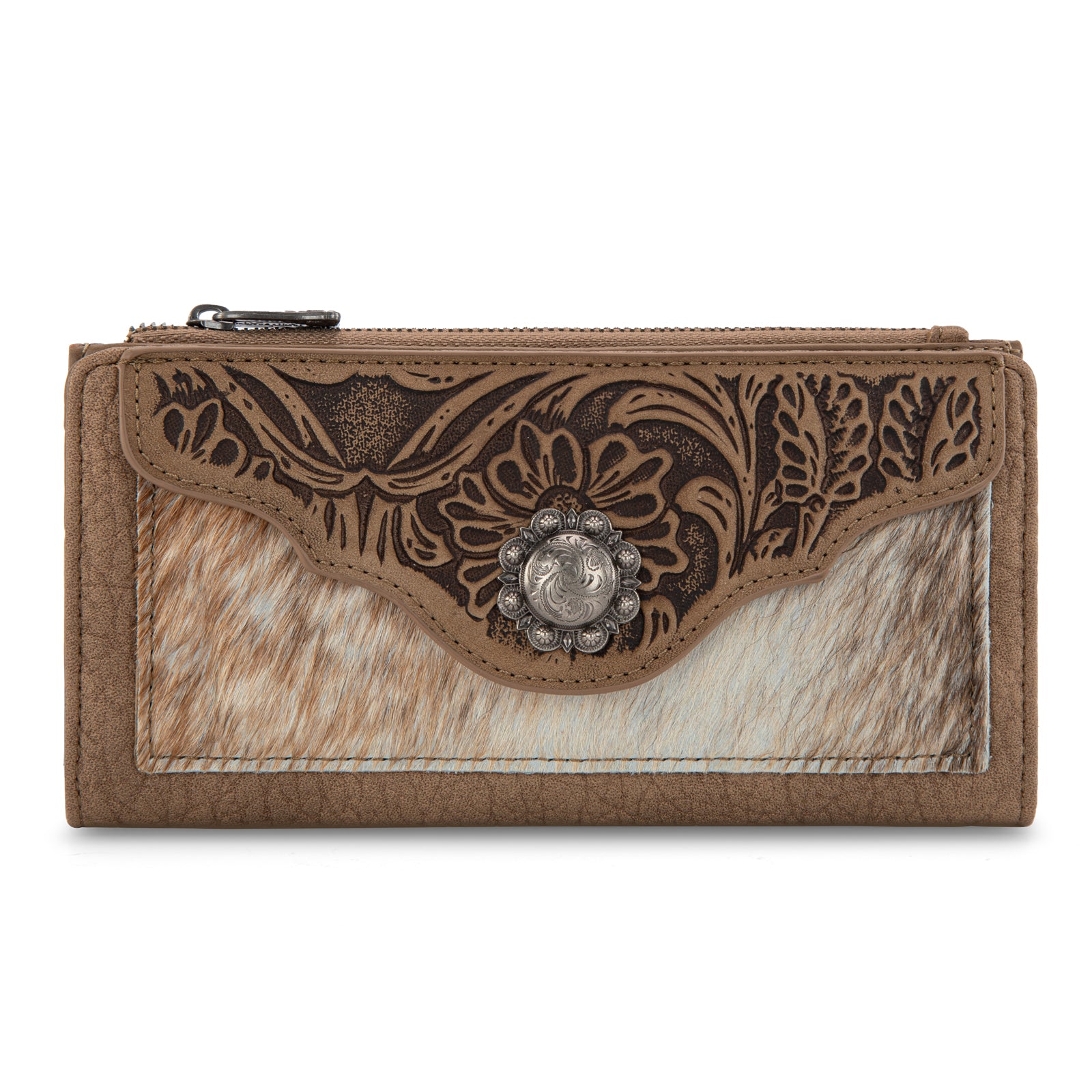 TR203-W2002 Trinity Ranch Hair-On Cowhide Tooled Collection Wallet