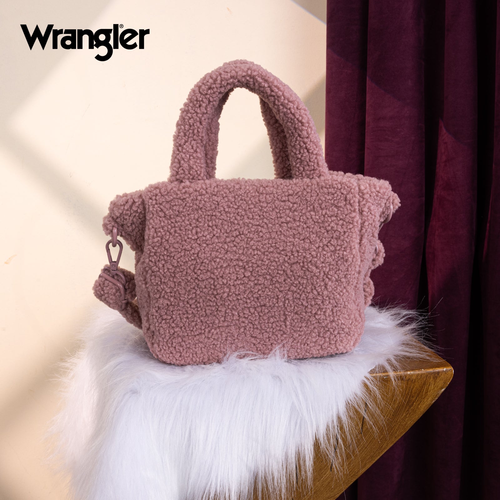 WG266-8015 Wrangler Sherpa Aztec Sherpa Small Tote/Crossbody - Dark Pink